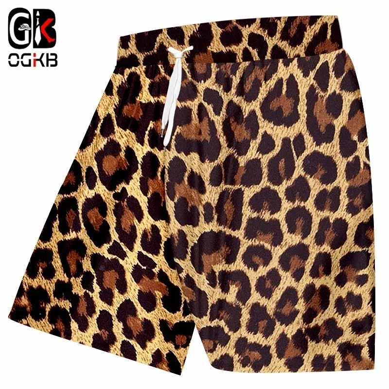 OGKB летние мужские пляжные шорты для серфинга с леопардовым принтом 3D повседневные свободные пляжные шорты унисекс