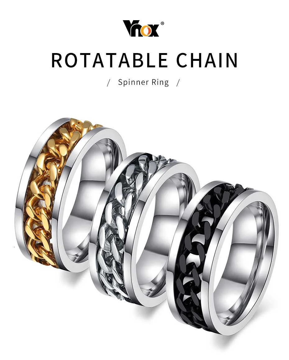 Кольцо Vnox мужское поворотное, стильная цепь из нержавеющей стали ...