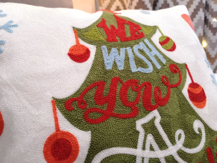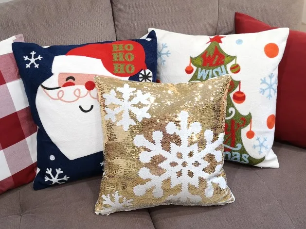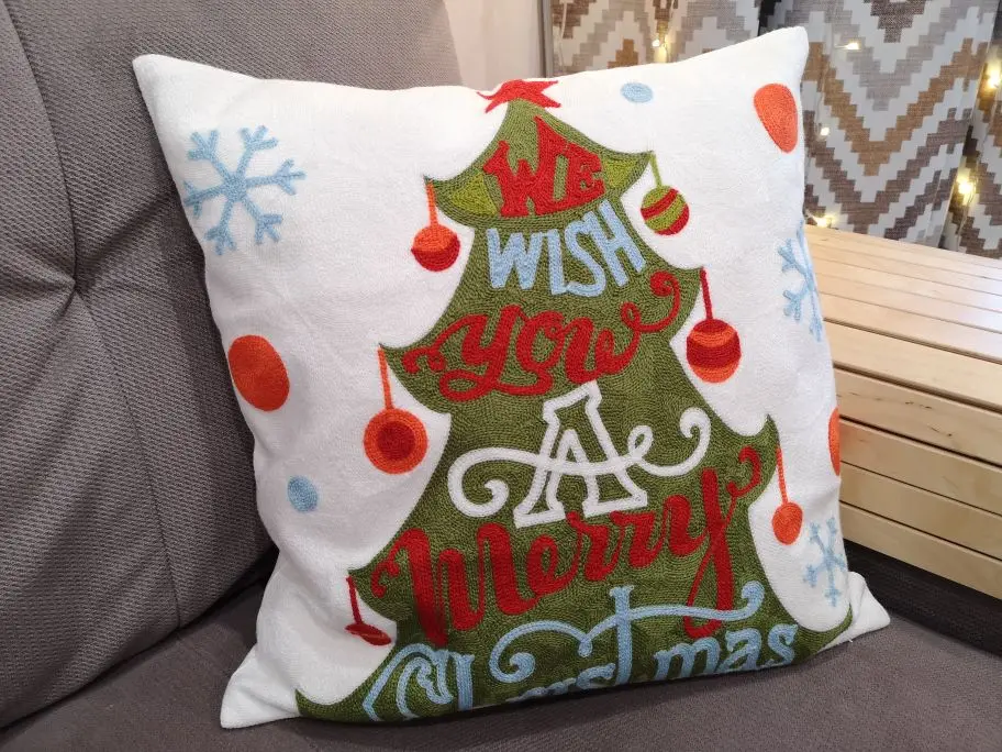 Декора вышитые рождественский Чехол на подушку с новогодней елкой со снежным цветком Подушка Чехол из хлопка в клетку с вышивкой, накидка для подушки, 45x45cm