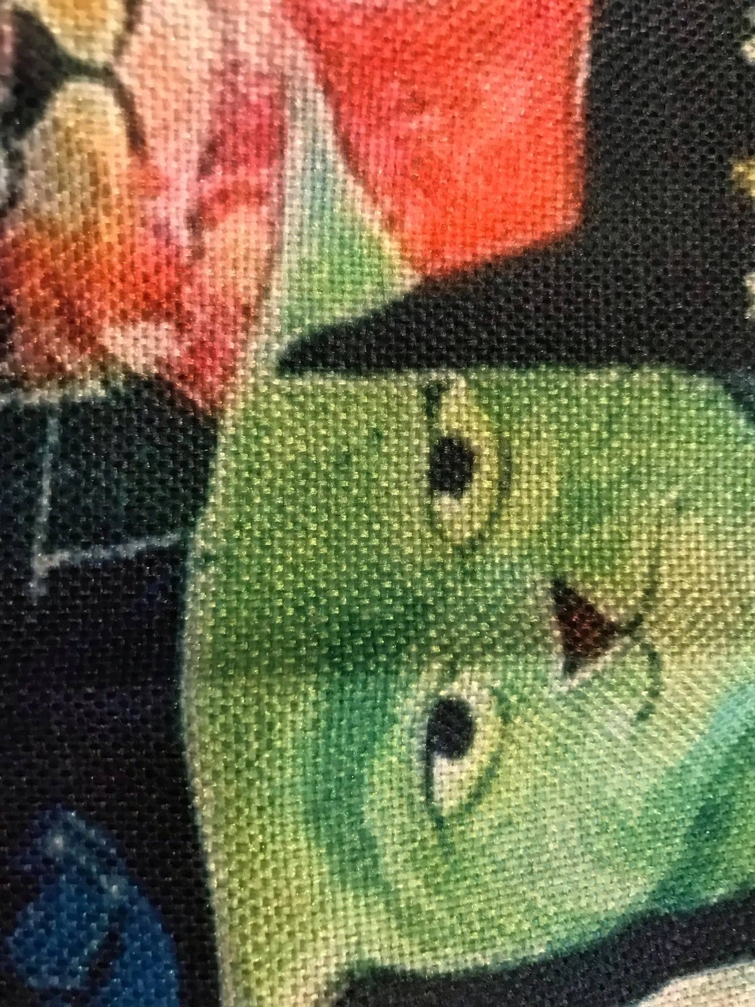 Материал тоненький достаточно. Сумки не вместительные. Габардиновые раза в два прочнее. Рисунок яркий.