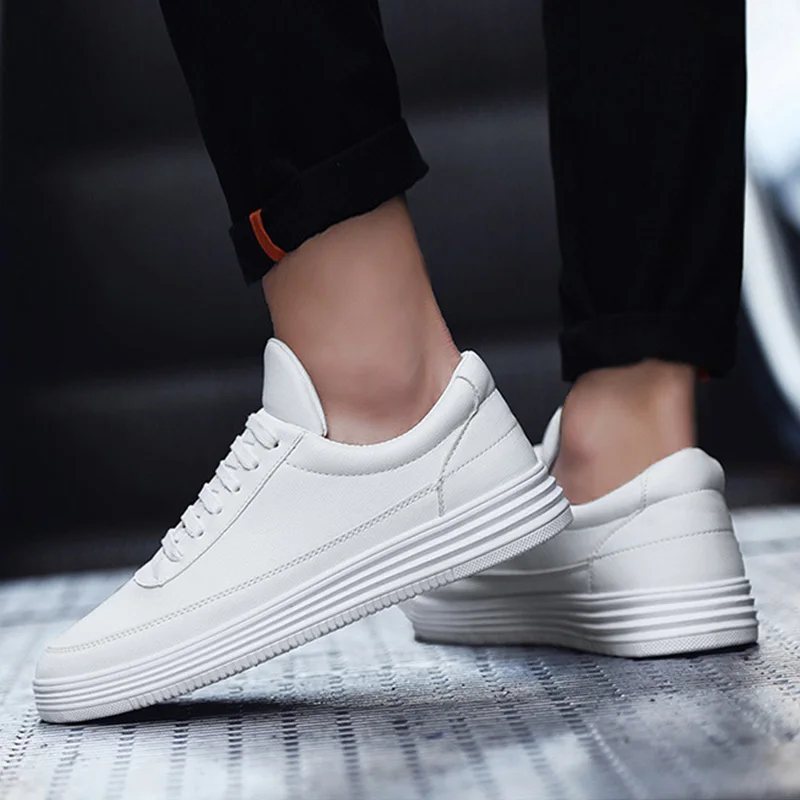 Мужские кроссовки из мягкой кожи, Повседневная модная брендовая обувь, белые черные, A015