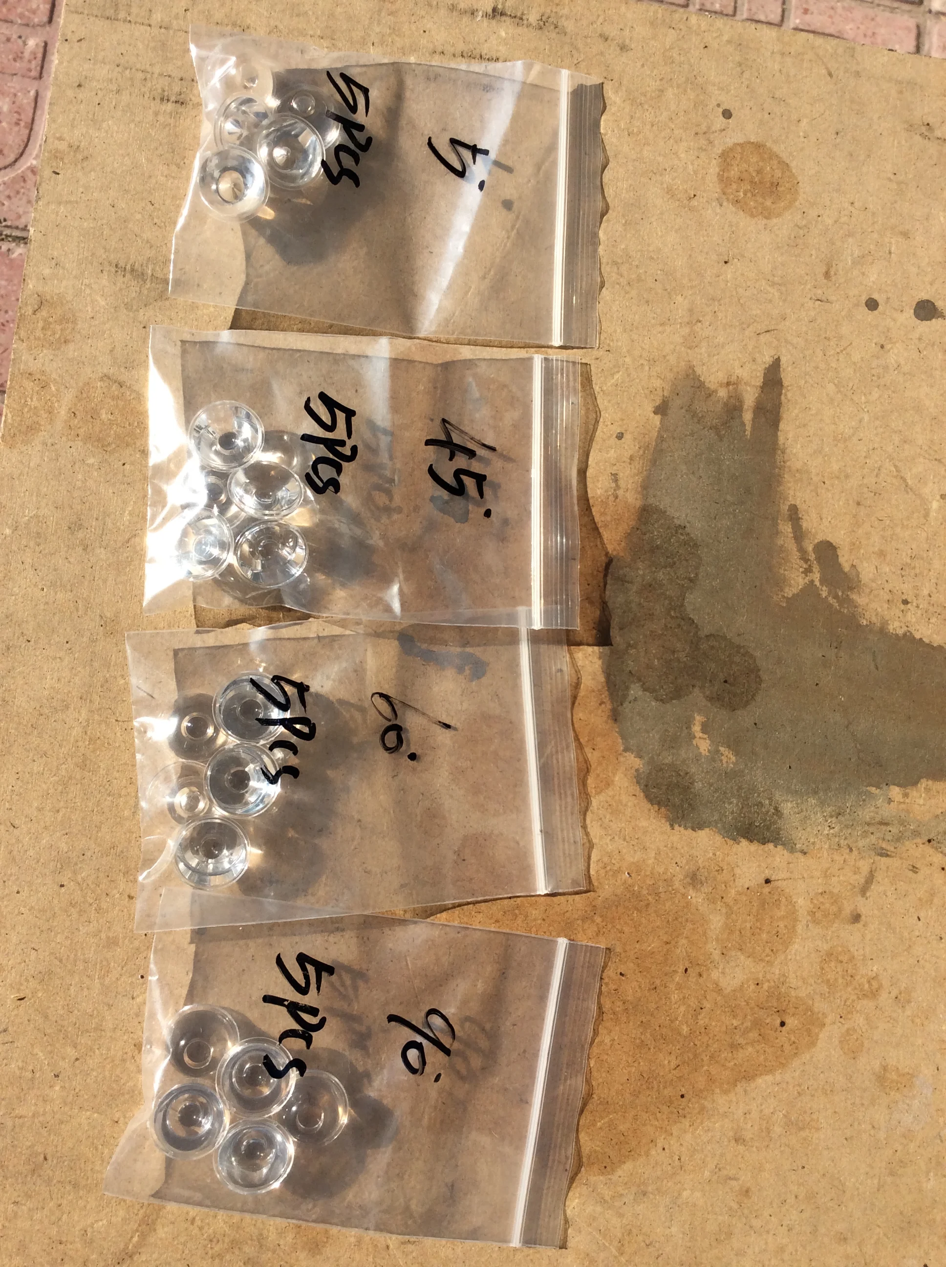 Линзы имеют разную высоту и простую геометрию (более продвинутые линзы справа на фотографиях #1-2-от фонарика на фото #3). Лучи: глянцевые линзы дают точный круглый луч и не имеют настоящего широкого ближнего света; глянцевые линзы 30-60 ° и линзы в полоску <45 ° дают много вспышек и показывают квадрат и ножки светодиодов; Глянцевые линзы 90-120 ° дают плохой кольцевой луч; линзы в полоску обеспечивают прямоугольный свет, который не удобен для ходьбы (Возможно, подойдет для bikecycling); Все матовые и Коллиматорные линзы имеют Гладкий Круглый луч; Коллиматорные линзы дают самую однородную широкую область света, поэтому они требуют очень ярких мощных светодиодов. Лучший набор из 2 светодиодов и линз 15 ° глянцевый объектив для дальнего света + 30-45 ° коллиматор или 60-90 ° Матовый объектив для широкоугольного освещения. Один из лучших универсальных линз 15-45 ° коллиматор или 30-60 ° Матовый объектив. Некоторые глянцевые имеют скобы. Некоторые из приобретенных различных линз поставляются идентичными. Более подробная информация скоро в базе данных GeniusVerus light.