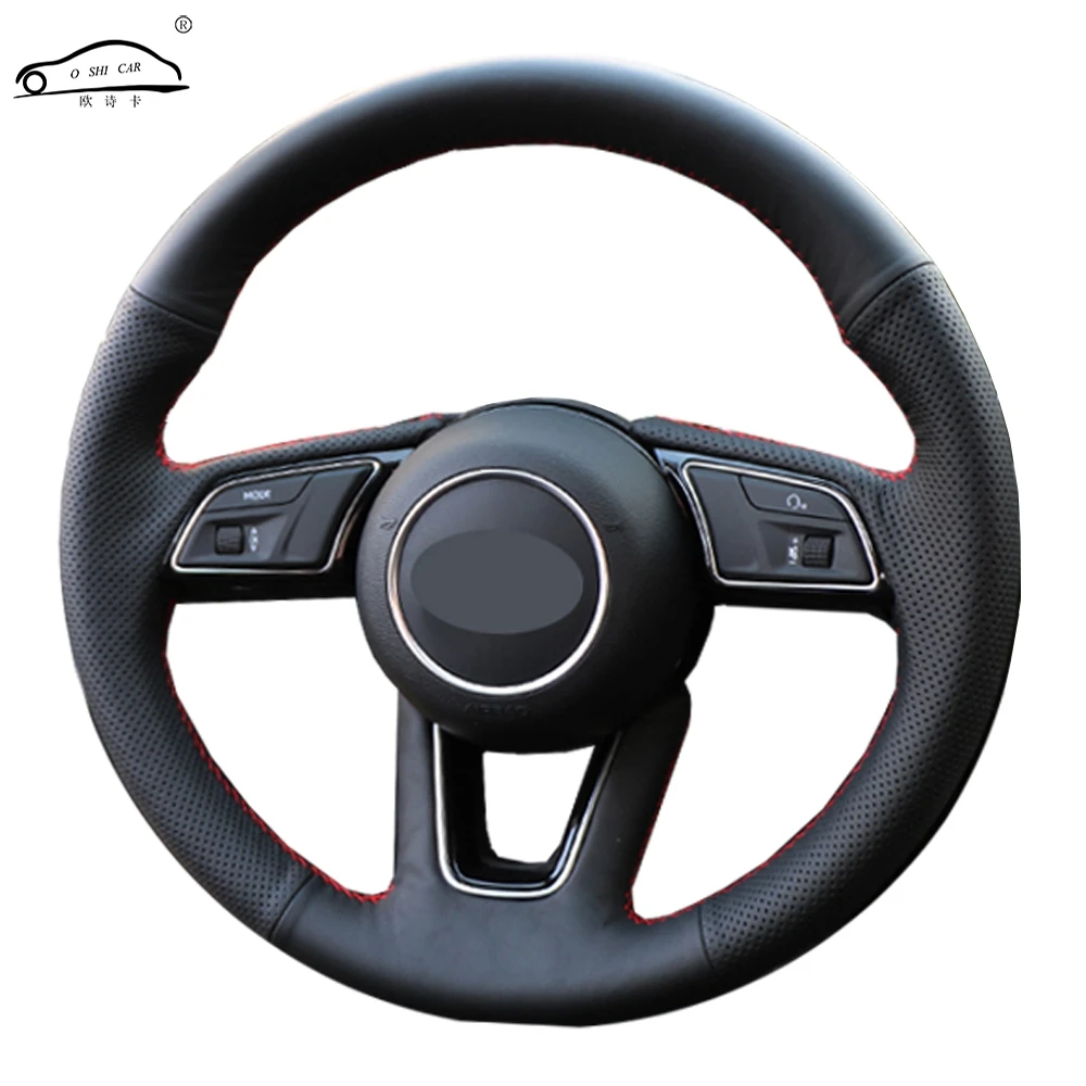 Индивидуальный чехол рулевого колеса автомобиля из натуральной кожи для Audi A5 2017Специальный руль оплетка Черная кожа мягкая
