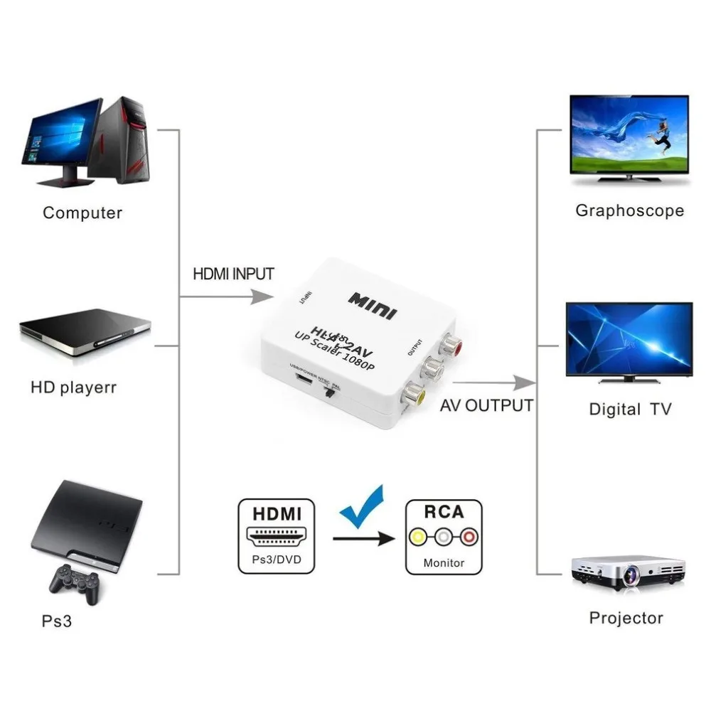 Совместимый с HDMI-RCA преобразователь AVRCA CVBS 1080P видеопреобразователь с поддержкой NTSC PAL выход HD AV