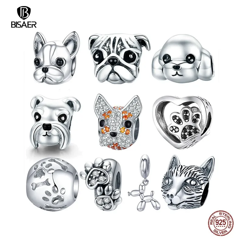 Подвеска в виде собаки, серебряные бусины в виде французского бульдога, шнауцера, Хаски, пуделя, собаки, подходят для изготовления оригинальных браслетов своими руками