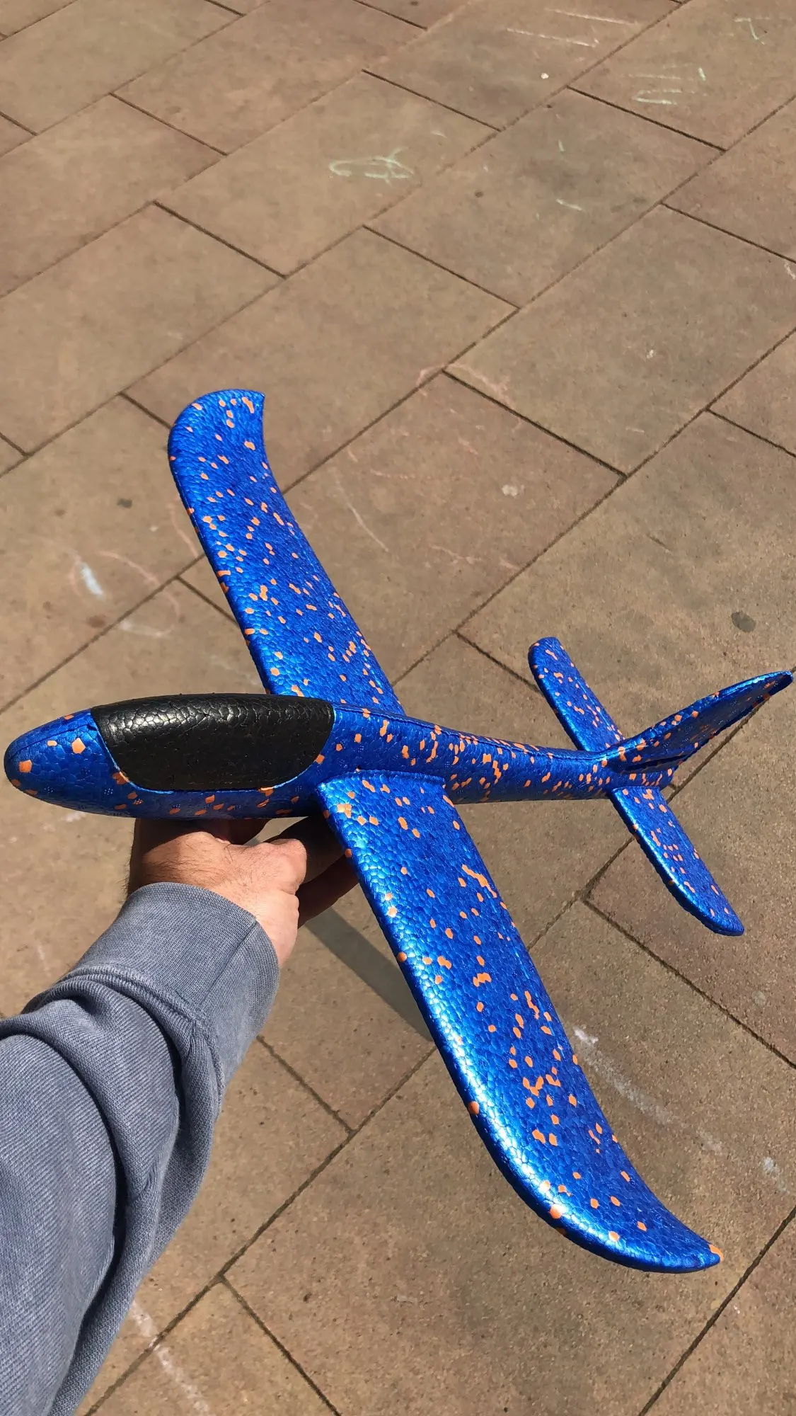 Доставка 1,5 месяца, все как в описании, материал самолетика плотный и достаточно крепкий. Самолетик летает в 2х режимах - прямо и вверх. Это регулируется задним крылом. Ребенок доволен!
