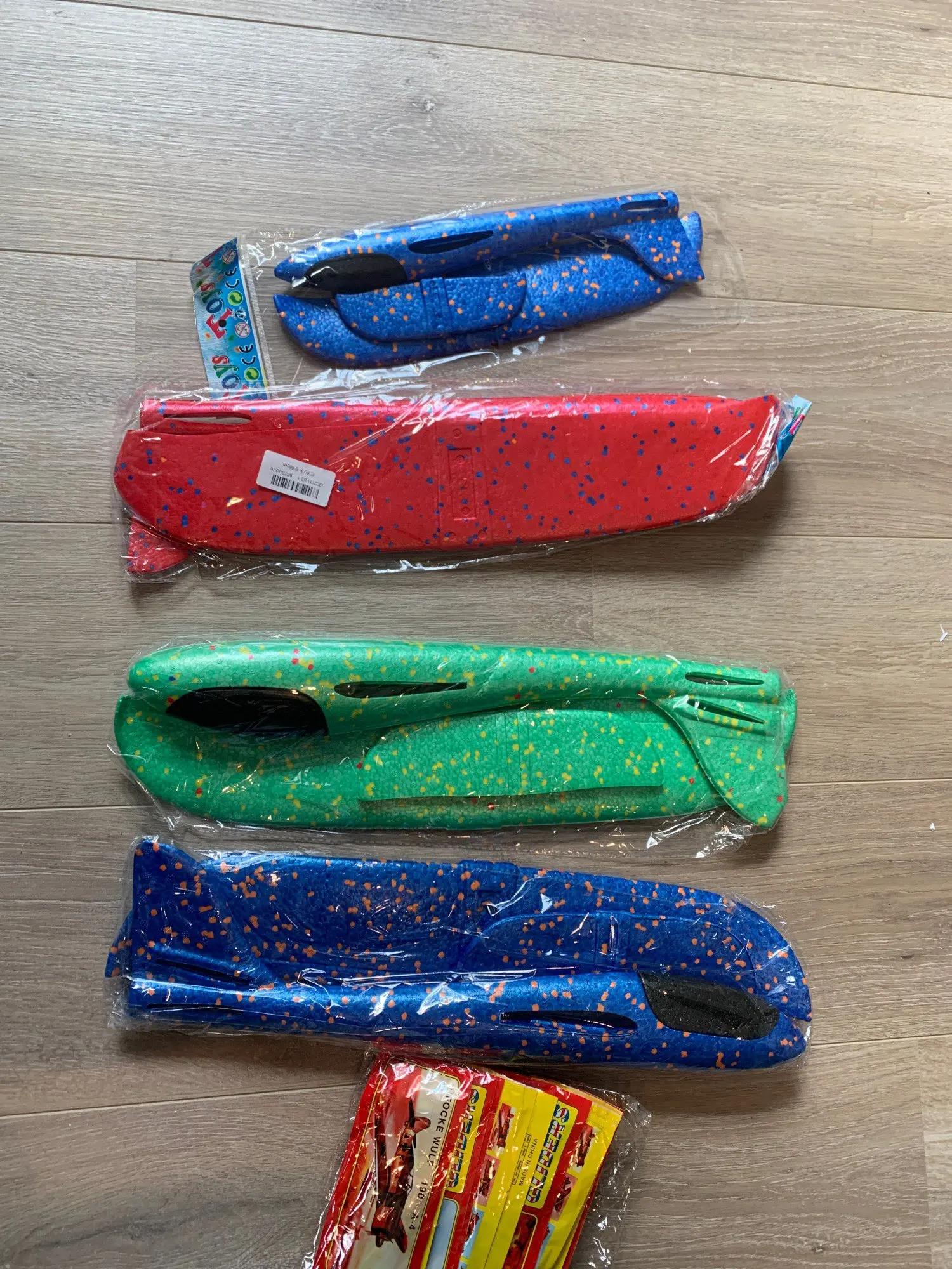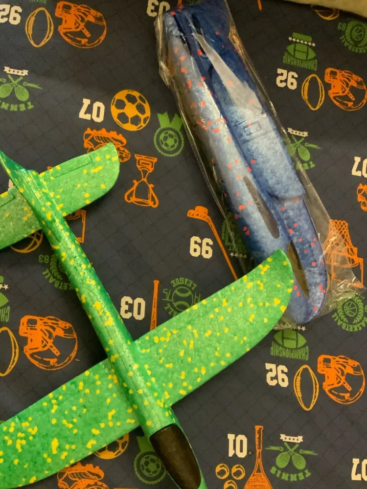 Они пришли ко мне довольно рано. Два самолета приходят в упаковке. Они сделаны из жесткой и легкой пены. Легко собрать и весело для детей.