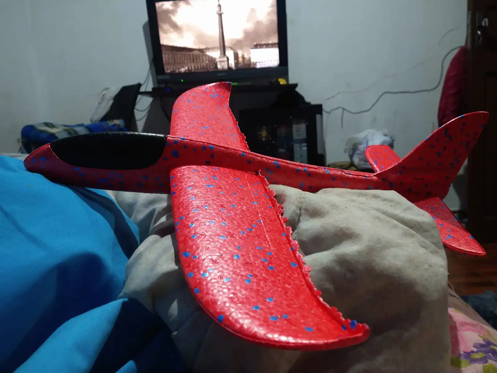 Самолёт, летает, ребёнок доволен. Пришёл в разобраном виде, лёгкий. По размеру небольшой, ребёнку 2года как раз держать в руках удобно. Но пенопласт тонкий, можно сломать, посмотрим, на сколько его хватит по времени