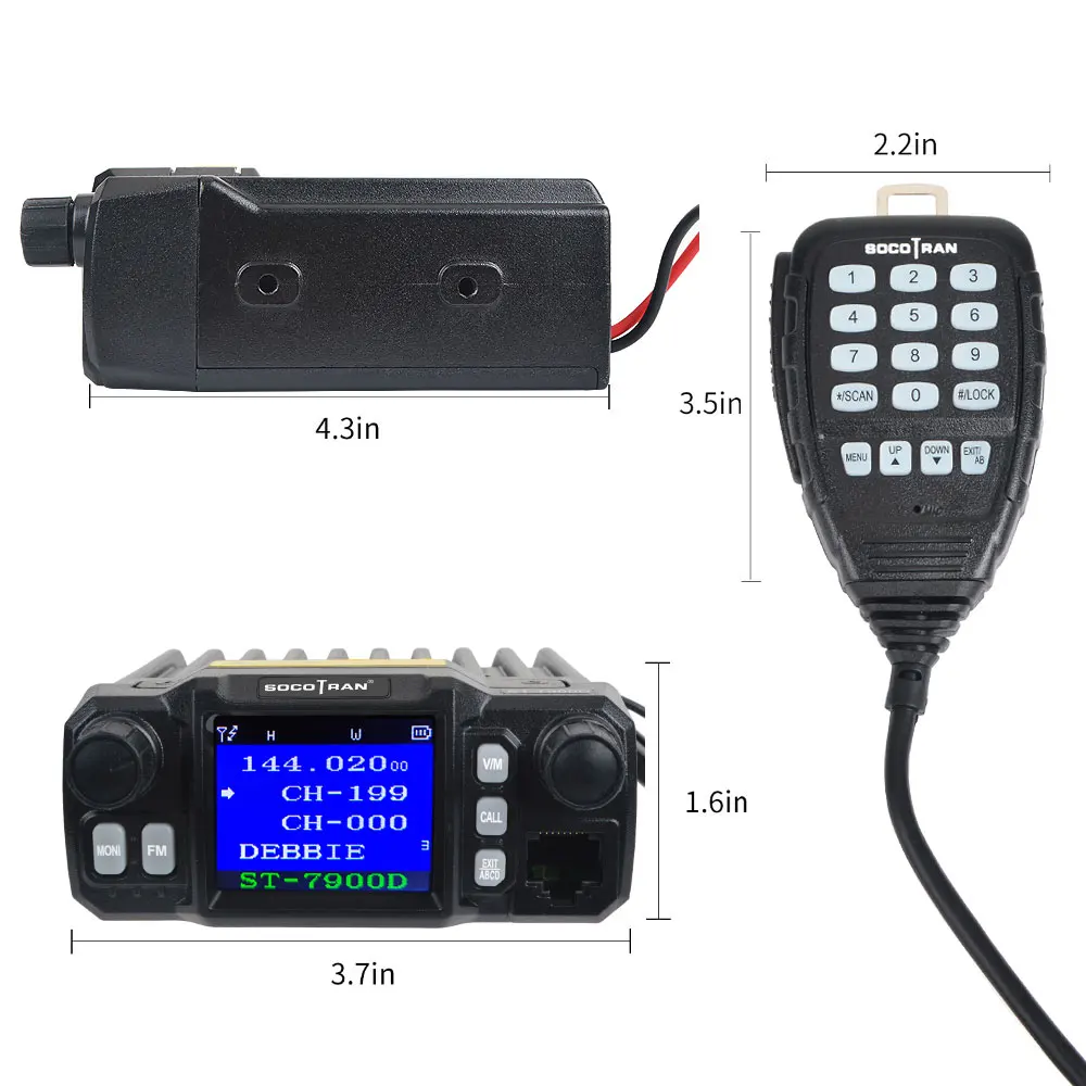200CH высокий выход Мощность 25 Вт/20 Вт UHF 136/174 МГц (220/260 МГц) VHF 400/480 МГц (350/390 МГц) минимальный цветной экран Socotran ST-7900DMobile радиоприемопередатчик Ham с бесплатным кабелем программирования и антенной