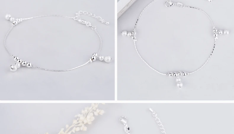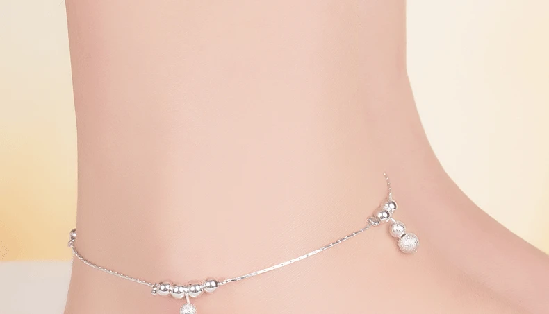 Женский браслет на ногу из серебра 925 пробы, с бусинами