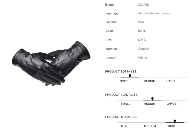 Перчатки мужские из козьей кожи, зимние, черные, GSM043