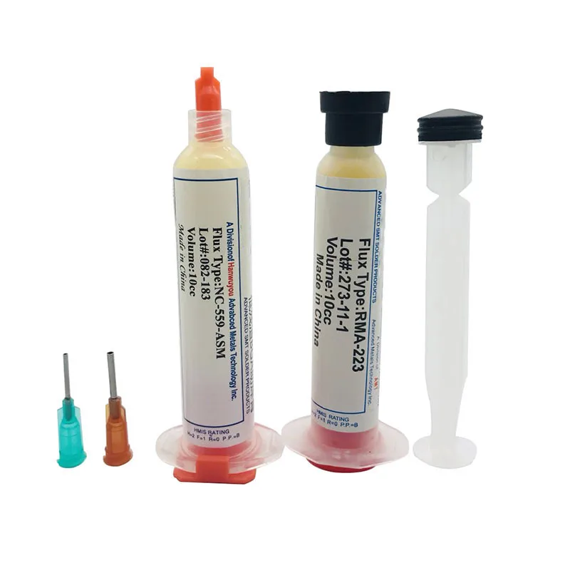 В форме иглы 10 куб. См RMA-223 PCB PGA BGA SMD + NC-559-ASM с гибким наконечником шприц флюс паяльной пасты ремонта смазки 2 шт.компл.