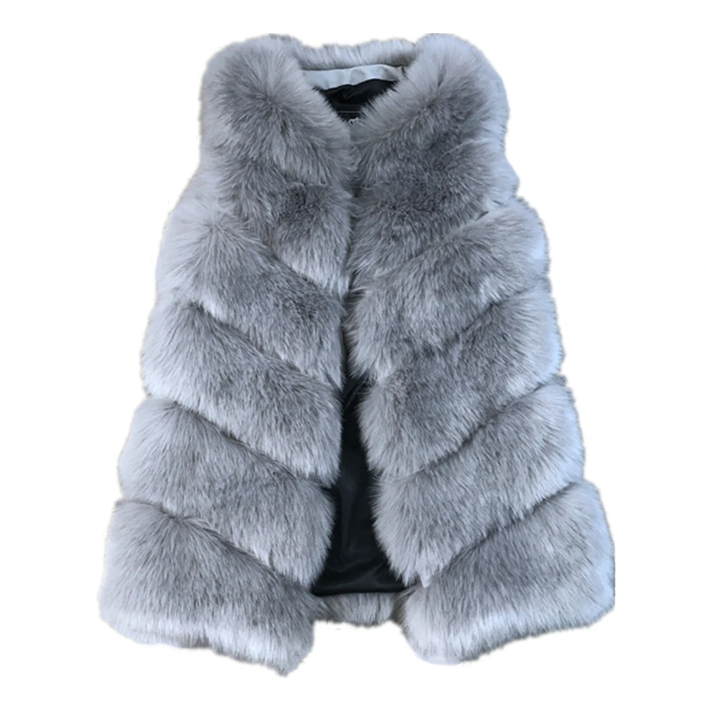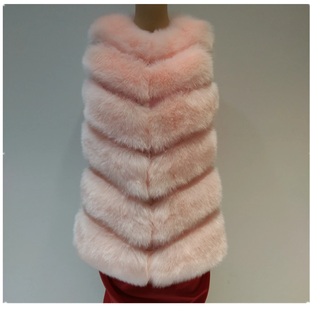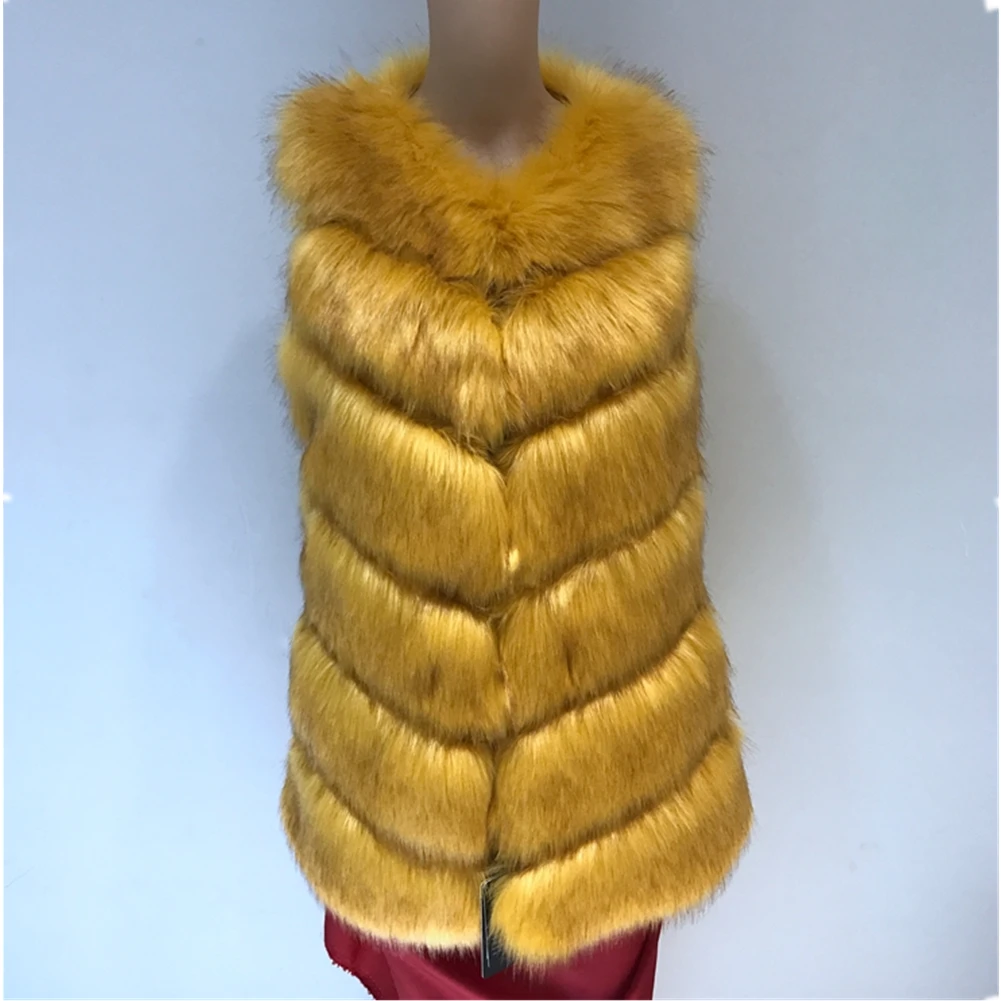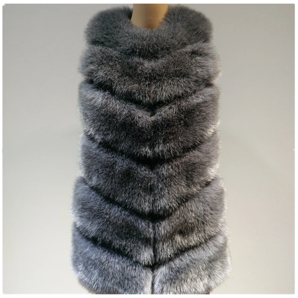 Жилет женский из искусственного лисьего меха, длинный, зимний