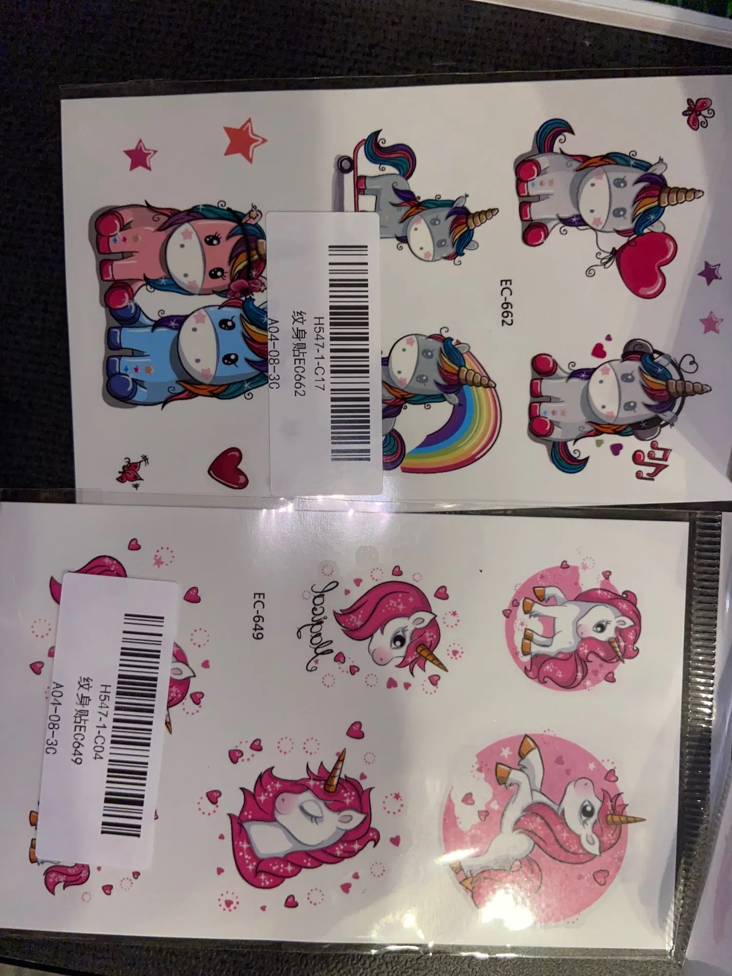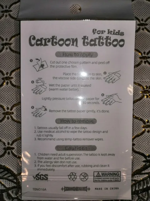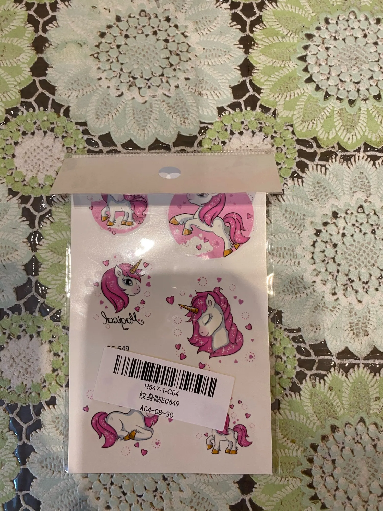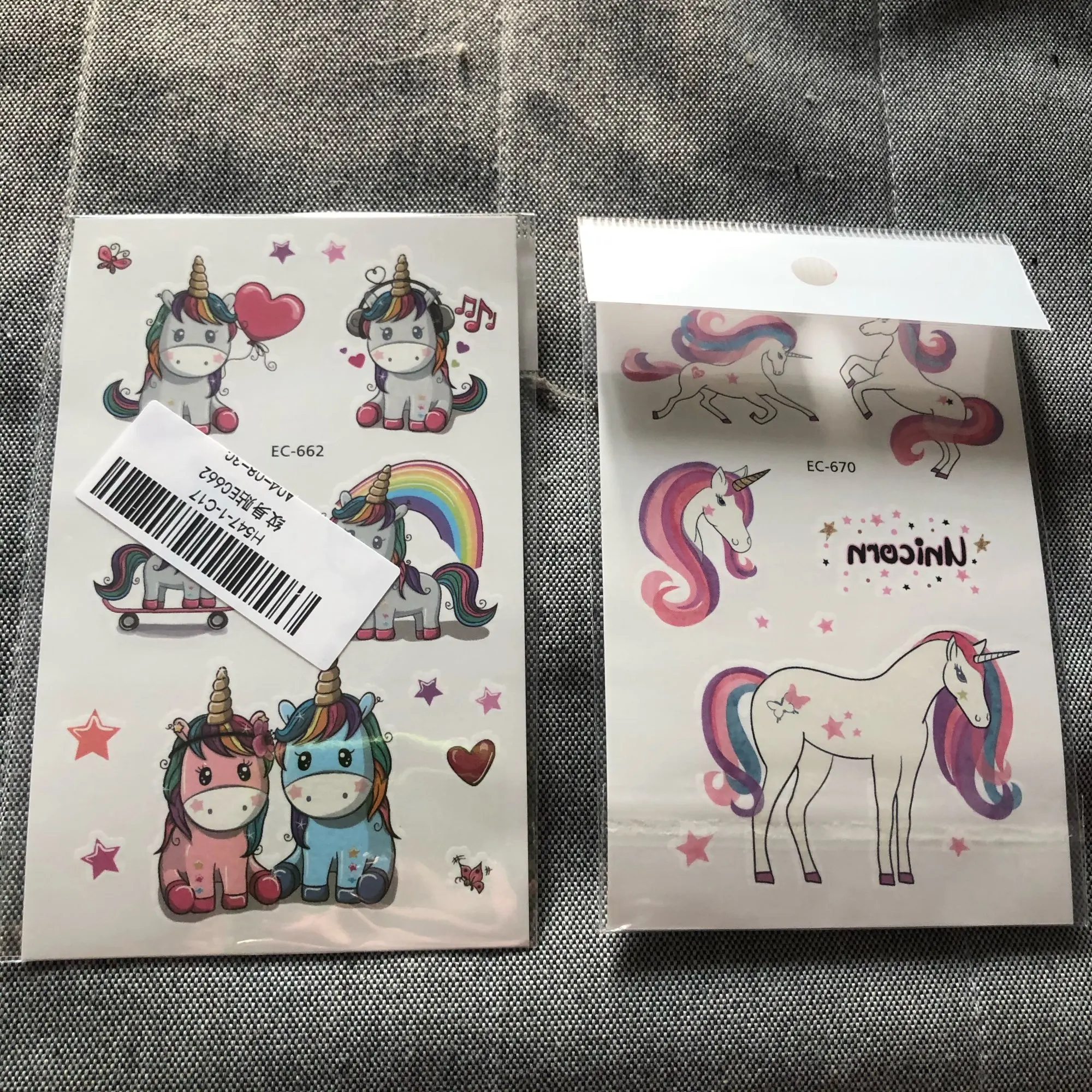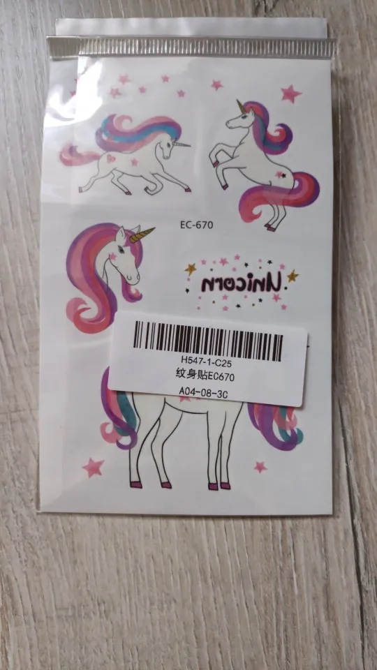 Посылка шла примерно месяц. Дочери очень понравились картинки. Переводятся легко, чуть бледноваты. Зато носятся долго, даже если с мылом мыть руки. Закажем ещё несколько штук. Классные.