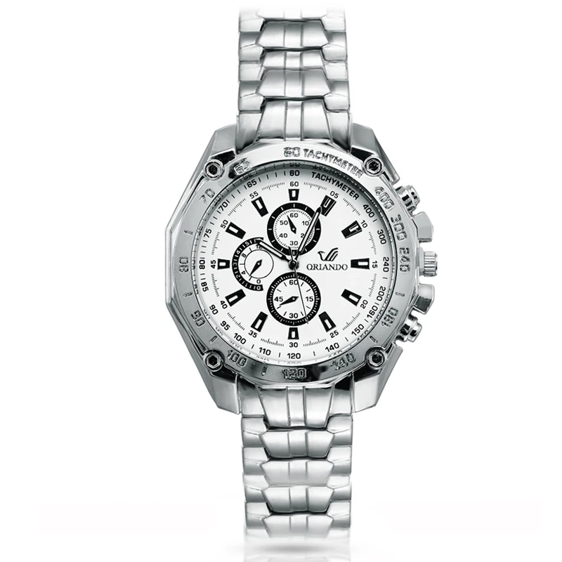 Мужские кварцевые часы ORIANDO, серебристые наручные часы из нержавеющей стали, модные классические деловые часы, Прямая поставка