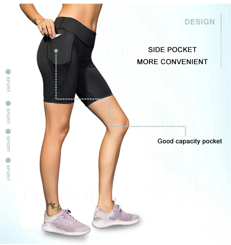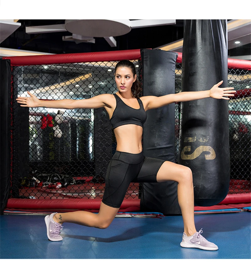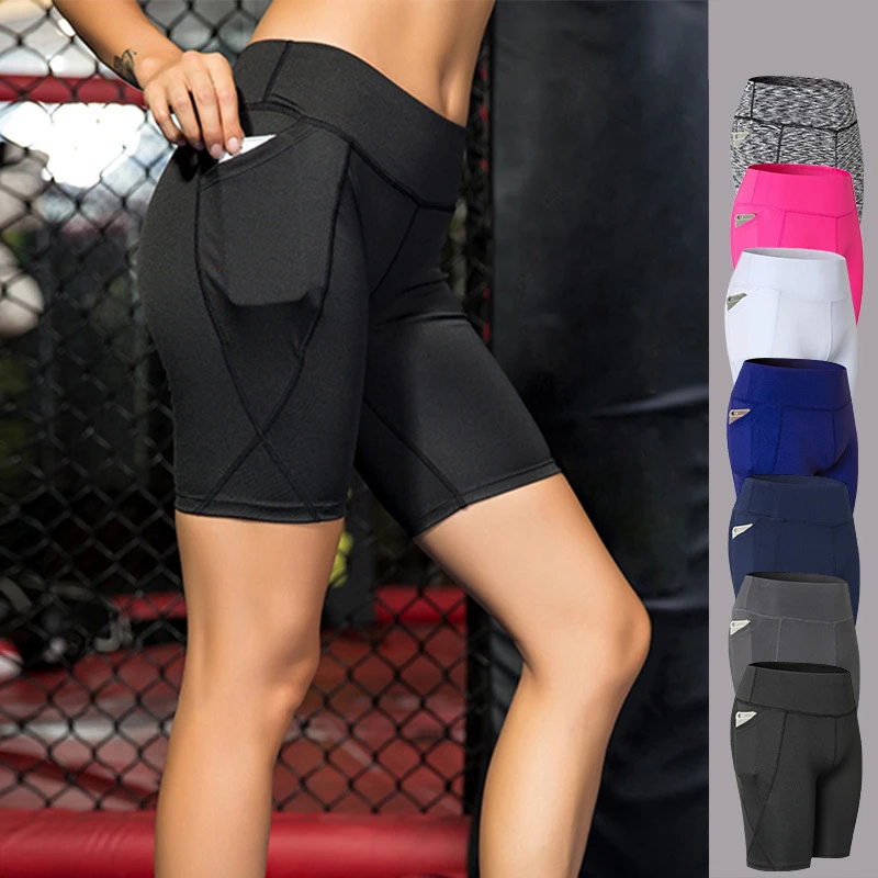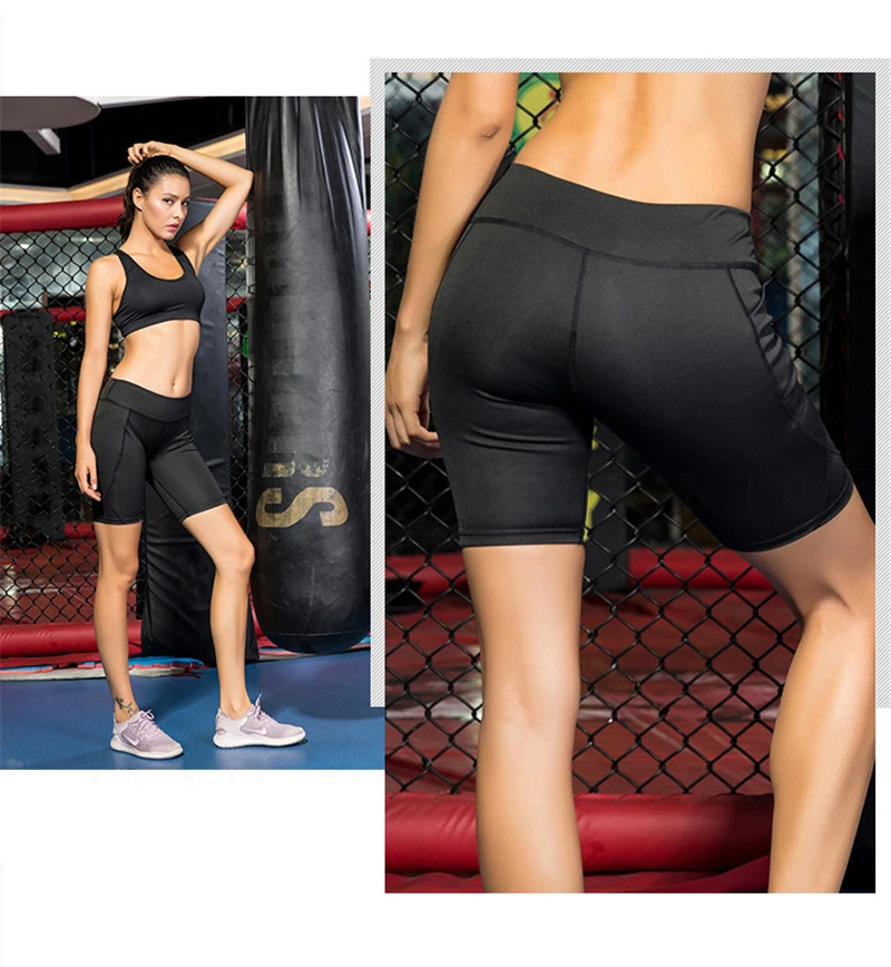 Женские велосипедные колготки, обтягивающие шорты для йоги, фитнеса, тренажерного зала, спортивных тренировок, бега, Капри, быстросохнущая тренировочная короткая одежда с карманами