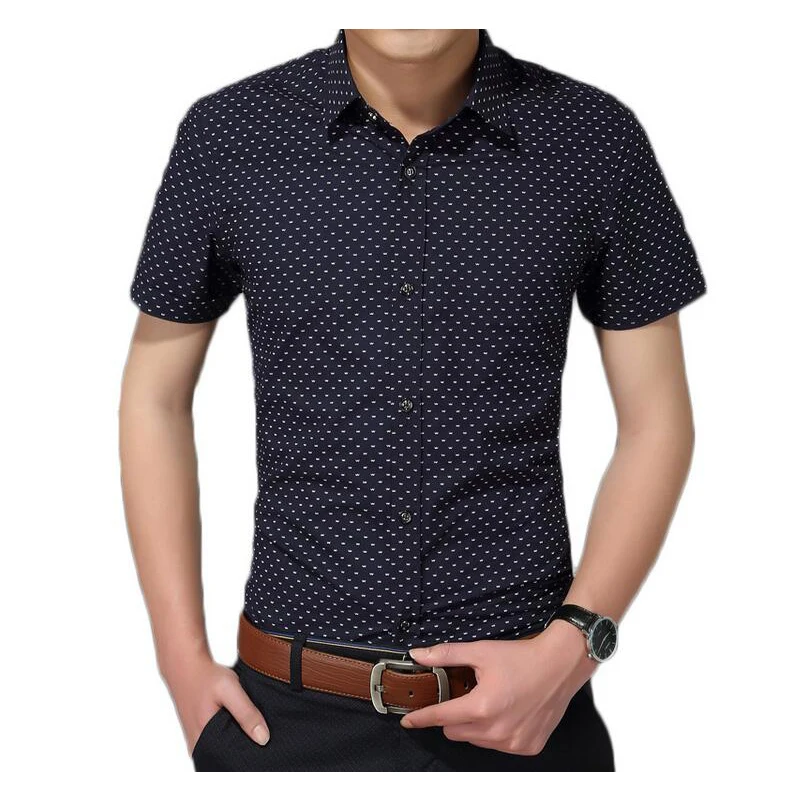 Рубашка мужская хлопковая в горошек, модная социальная, сорочка с короткими рукавами, Повседневная размера плюс, 5XL