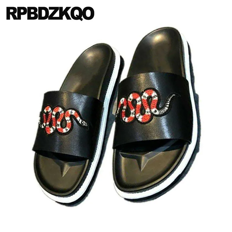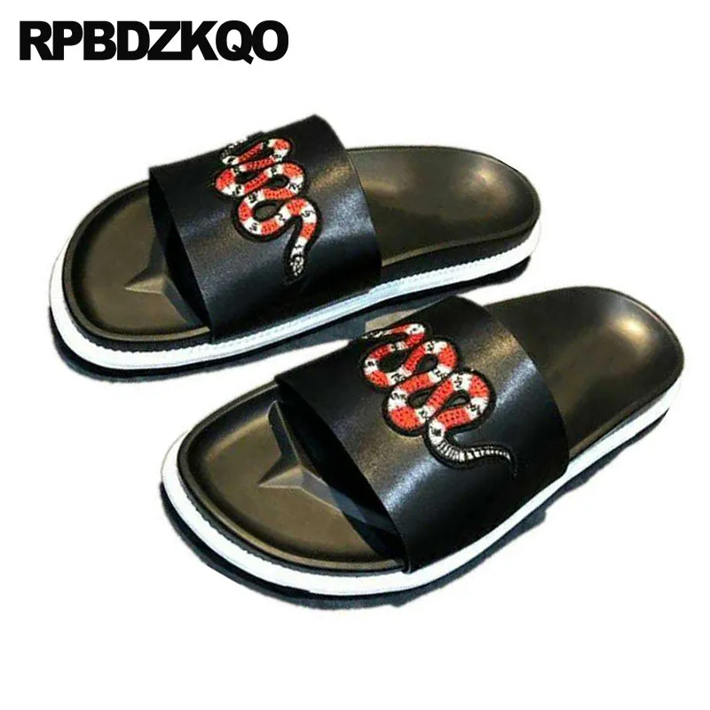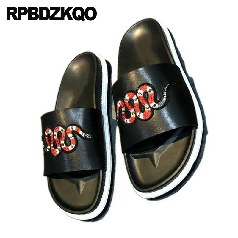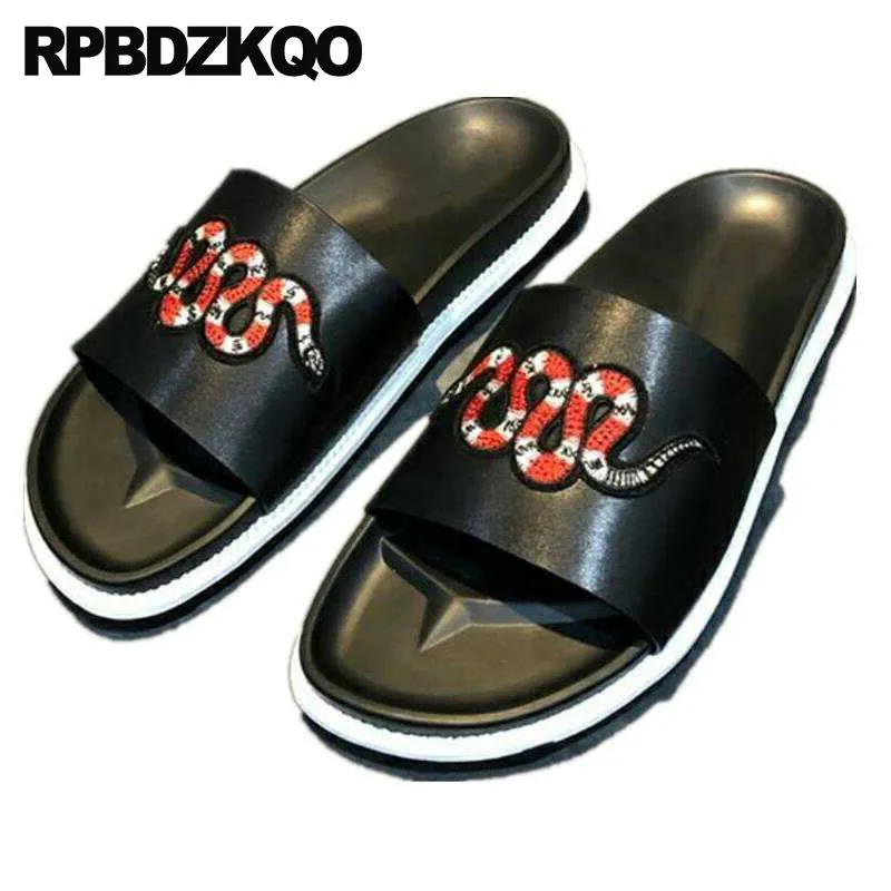 сандалии надевать вышивка на открытом воздухе домашние тапочки Дизайнерская обувь мужчины высокого качества слайды Настоящая кожа ремень хороший черный лето пчела
