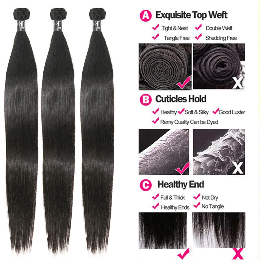Прямые индийские пряди для волос естественного цвета 100% человеческие волосы для наращивания 1 шт.3 шт. Бесплатная доставка