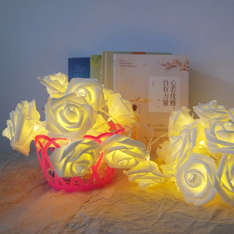 Гирлянда из романтических роз со светодиодной подсветкой, праздничн...