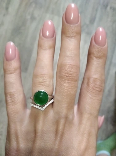 Кольцо с натуральным драгоценным камнем зеленый агат, натуральный камень, однотонное, 925 пробы, серебро зеленый оникс, Женские Ювелирные украшения, бижутерия