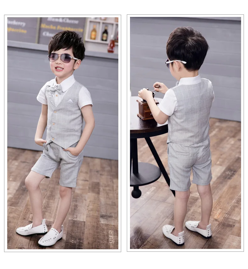 4 шт., комплект одежды для мальчиков, с жилетом и шортами