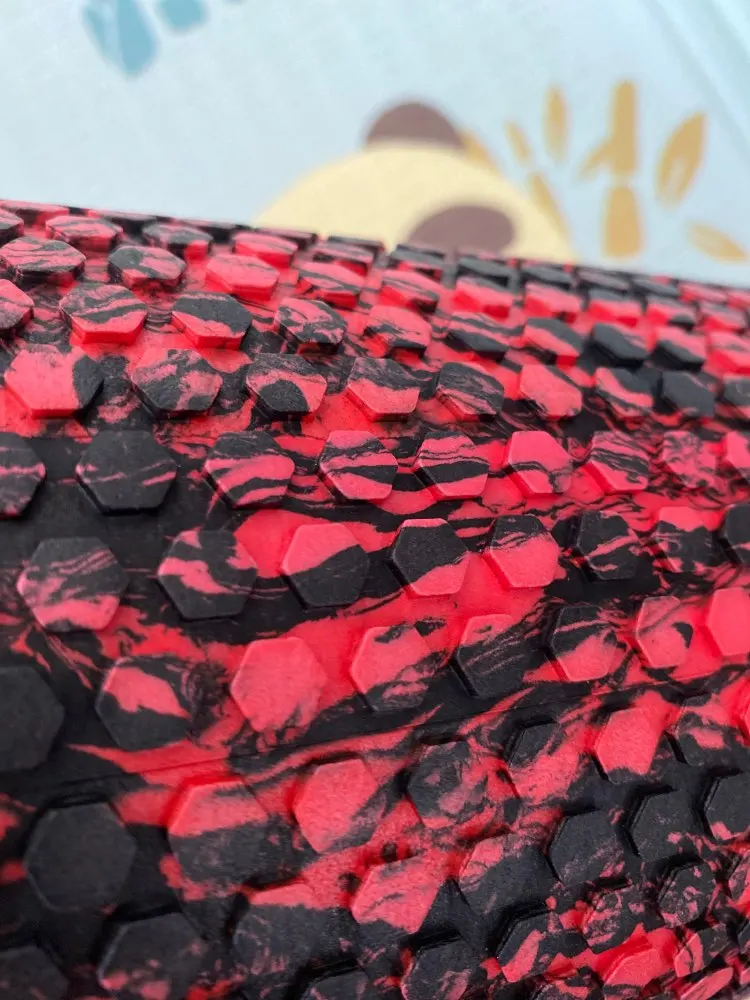 отличный материал и текстура. достаточно мякгий снаружи, чтобы было можно на нем кататься спиной и достаточно жесткий внутри, чтобы выдерживать вес и сильно не деформироваться. немного помяли с торца на почте.