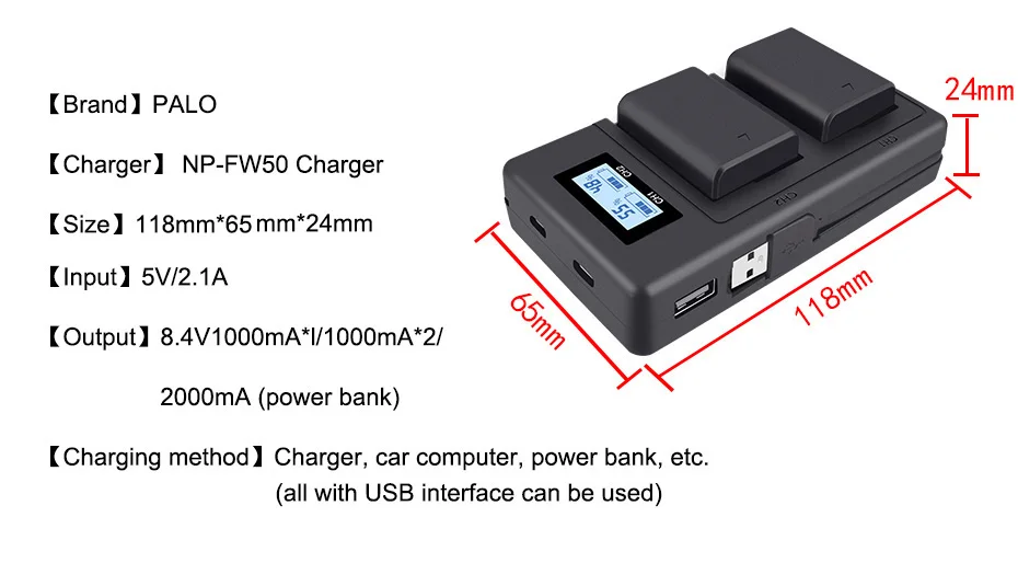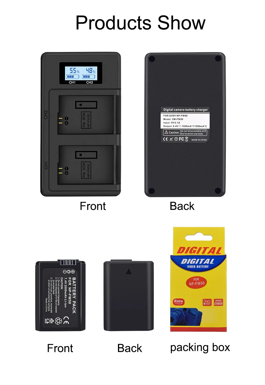 Аккумулятор для камеры 2000 мАч NP-FW50 NP FW50 + зарядное устройство с ЖК-экраном для Sony A6000 NEX-7 NEX 5N F3 NEX-3D NEX-3DW Alpha 7R II