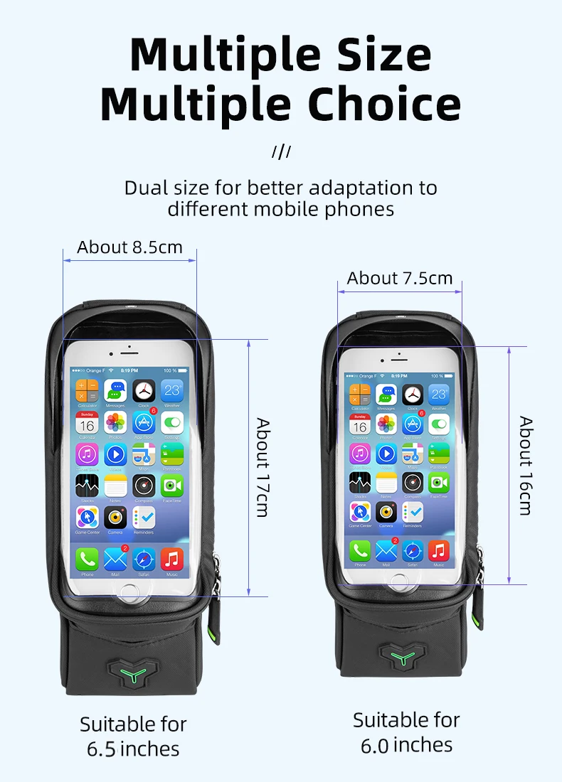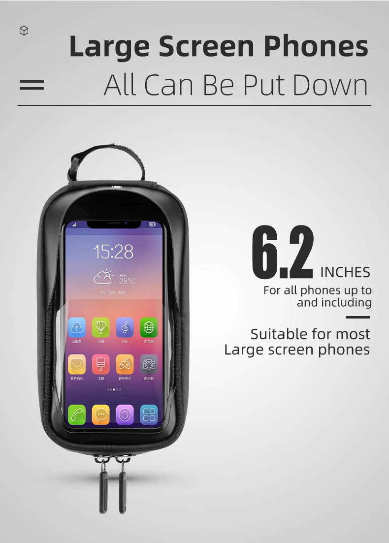 Велосипедная сумка подходит для горного велосипеда и удерживает мой телефон Motorola или Garmin trex 10 GPS. Сумка Большая для GPS, однако она все еще подходит и работает. Есть дополнительная комната для хранения.