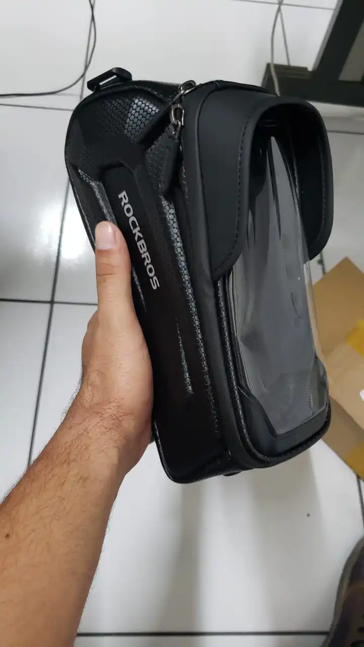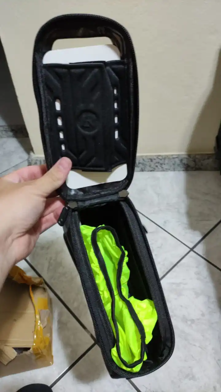 Produto exatamente igual ao das fotos do anúncio e de alta qualidade. Meu celular e grande e coube direitinho. Cabe bastante coisas na bag, carteira, relógio, powerbank, óculos. Vem com capa de chuva. Vendedor postou rápido. Chegou em 13 dias.