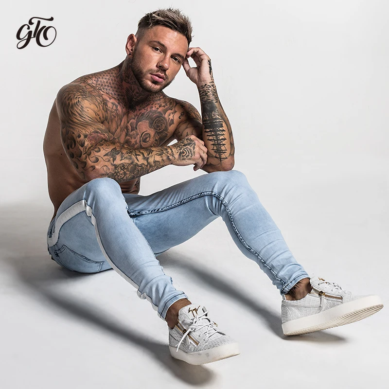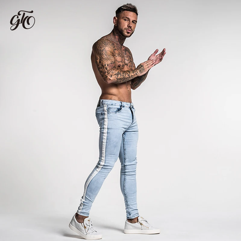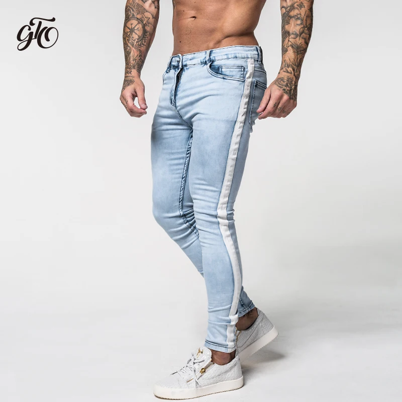 Узкие джинсы Gingtto для мужчин, Стрейчевые джинсы, брендовые синие обтягивающие рваные узкие джинсы с лентой, обтягивающие до щиколотки zm33