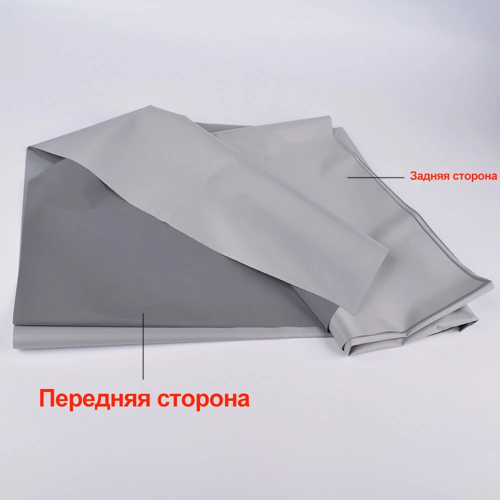 Темная светоотражающая сторона лицевая! С одного угла если посмотреть будет матовая, с другого блистеть. Если посветить фонариком, вокруг телефона будет радужный ареол. Если всё так, то вы правильно поняли какая сторона лицевая. Сделал каркас из труб, всё выставил, натянул не на отлично, но буду еще подправлять. Угол обзора и правда маленький, это действительно так, как здесь писали уже.