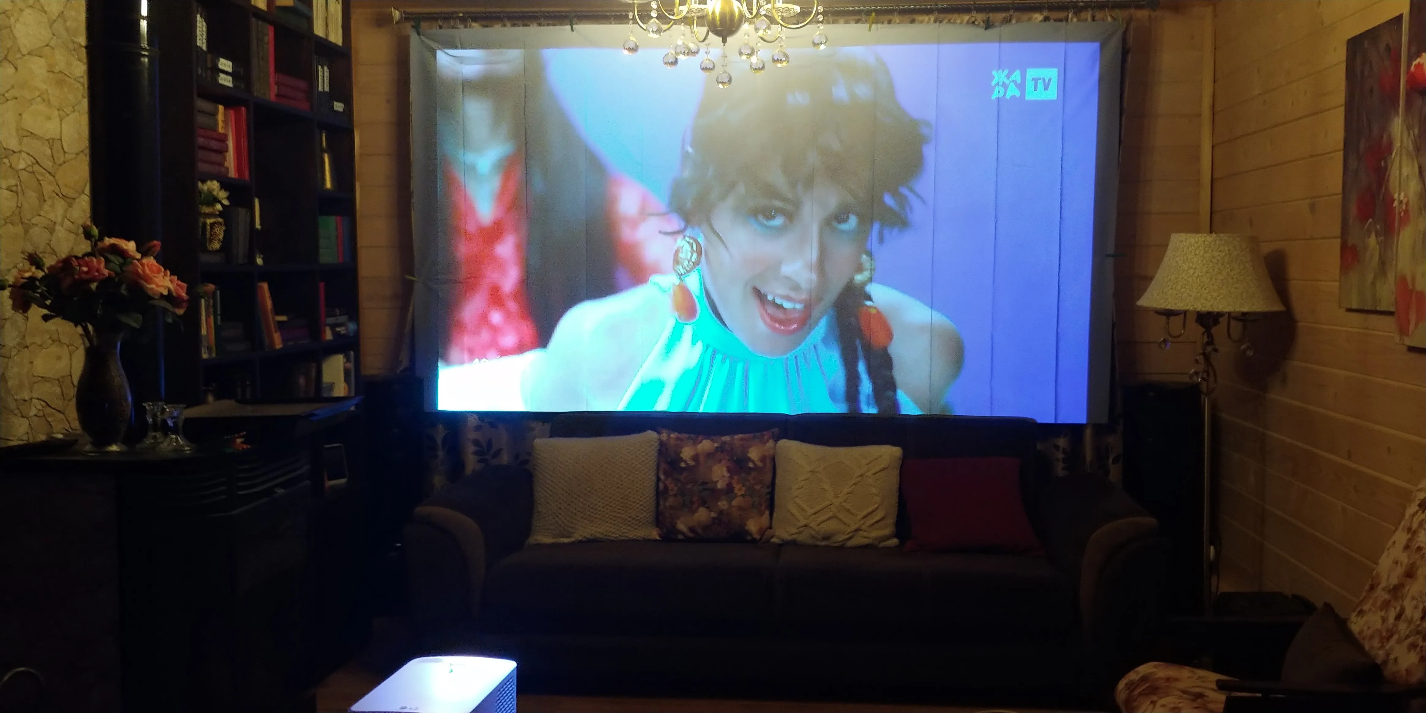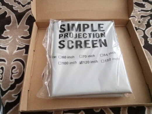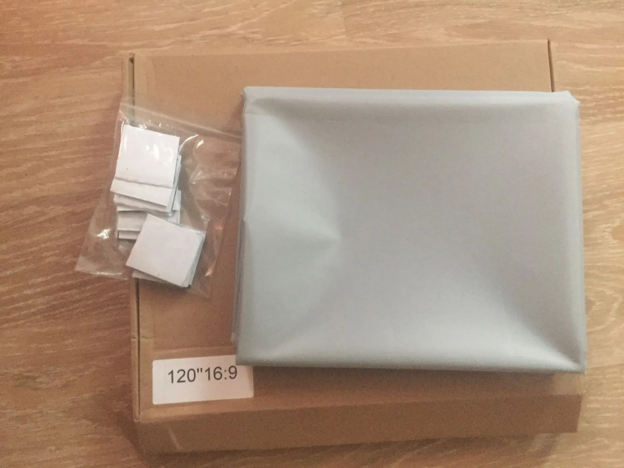 Отправка и доставка быстрые. Не ожидал такого эффекта от этой ткани! Сделал рамку из брусков, растянул без морщин и повесил на уровне зрения. В итоге яркость получилась достаточная, чтобы смотреть с включенным верхним светом. В темноте - неотличимо от хорошего телевизора. Контрастность потрясающая, просто вау-эффект, рекомендую