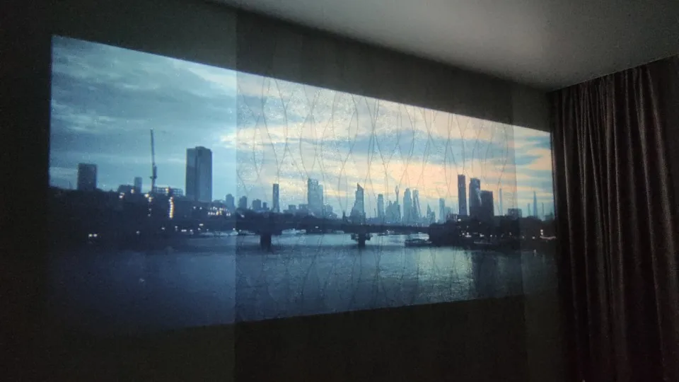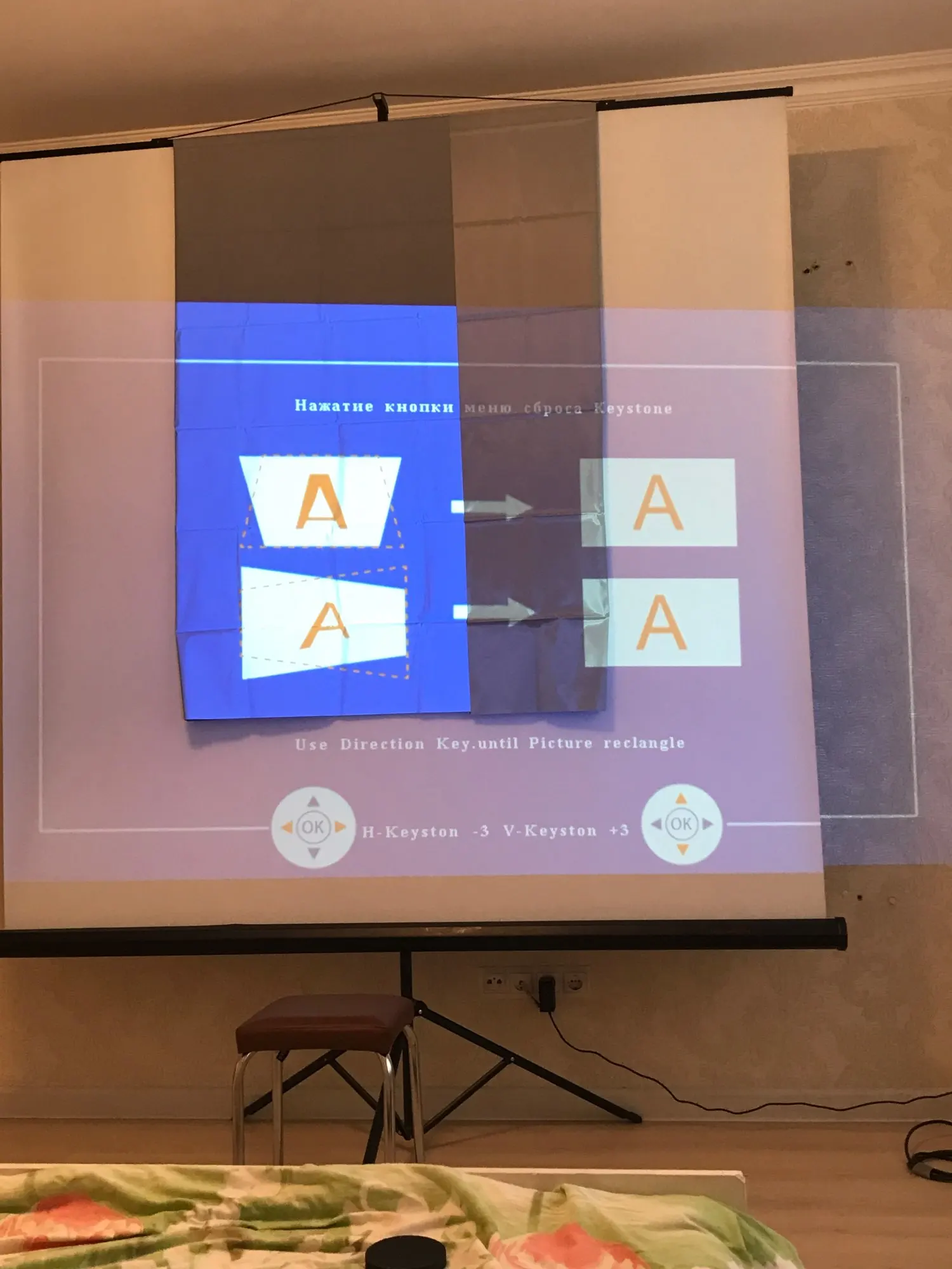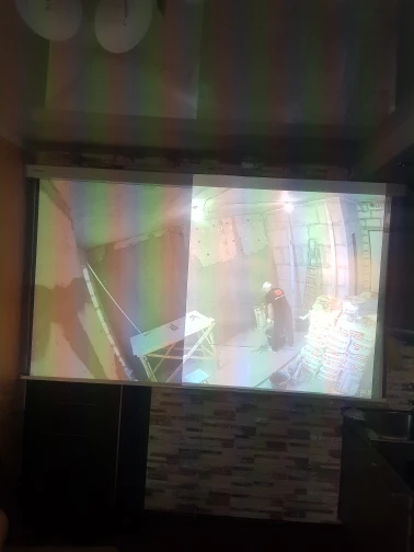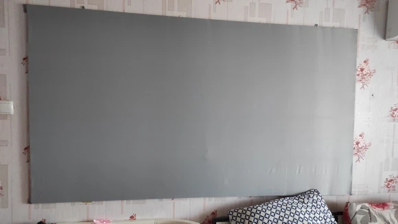 Ткань хорошая, но сгибов так много, что сложно разгладить. Сделали самостоятельно каркас, натянули экран, вышло хорошо. Видно намного лучше, чем на обоях, но лучше всего только под прямым углом, с боков картинка тускнеет. А в целом все отлично)