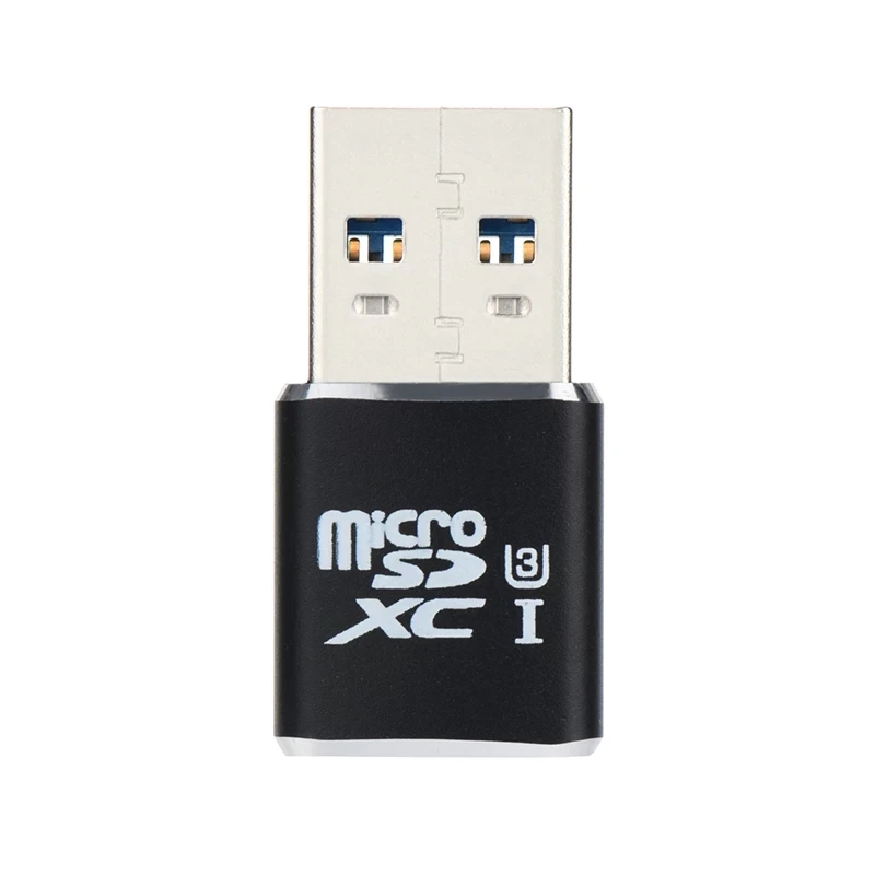 Особенности:100% новый товар высокого качества.Интерфейс USB 3,0.Высокая скорость передачи данных до 5 Гбит/с.Быстрая скорость передачи данных для надежного копирования/загрузки/резервного копирования.Дополнительная установка драйвера не требуется.Совместимость карт: MICRO SD/Micro SDXC/TF картаСовместимость с Windows ME,2000,XP,Vista,WIN 7 и Mac OS с интерфейсом USB.Характеристики:Тип: Адаптер для чтения картМатериал: алюминиевый сплав + пластикЦвет: черный/серебристыйРазмеры: 3 × 1,5 × 0,6 см/1,18 × 0,59 × 0,24 дюйма (прибл.)