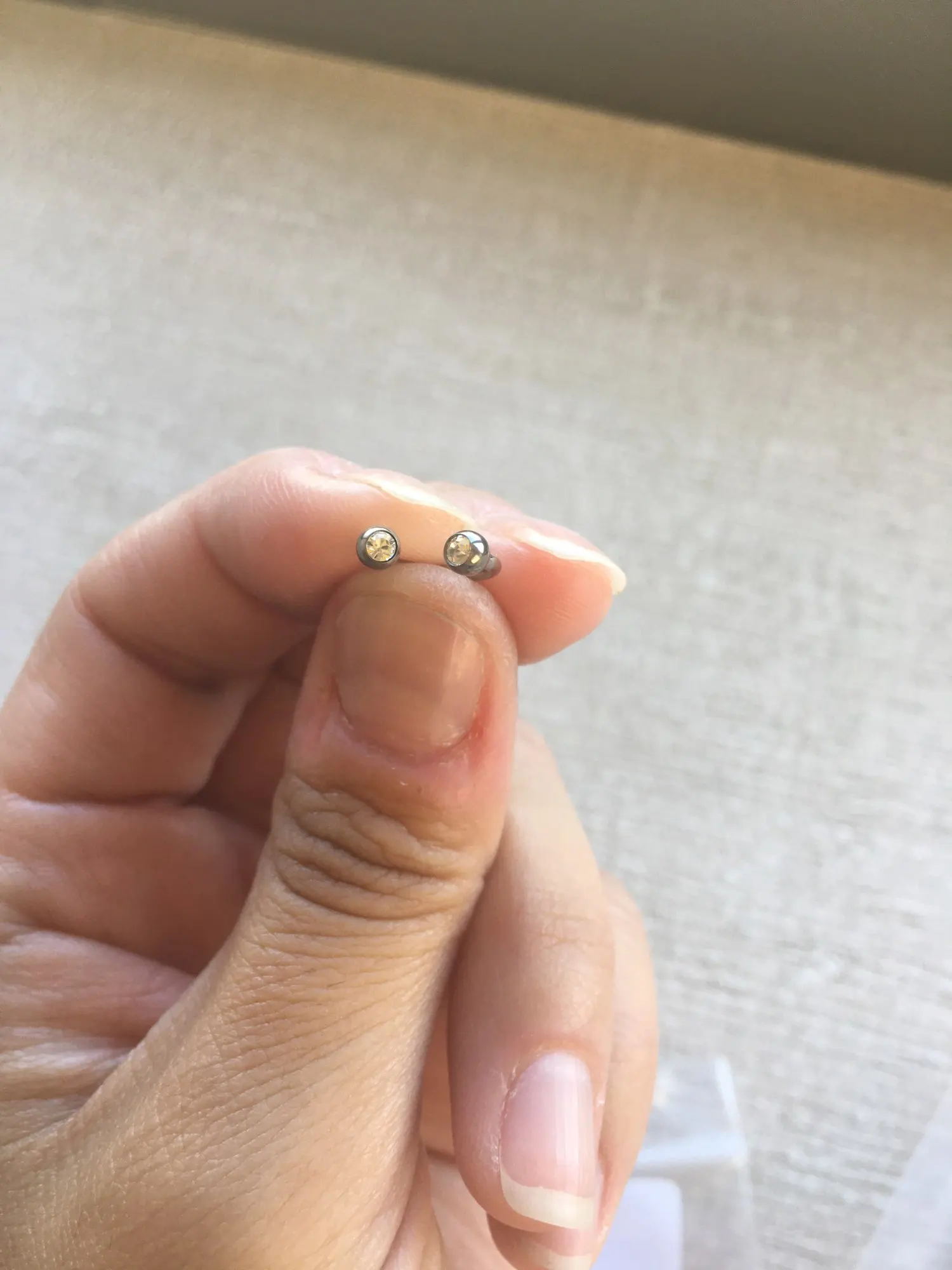 de kleur van de piercing is mat ik had hem zilver verwacht verder is die mooi blij mee