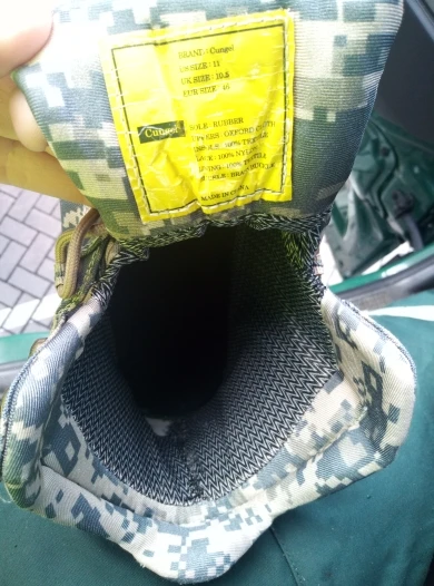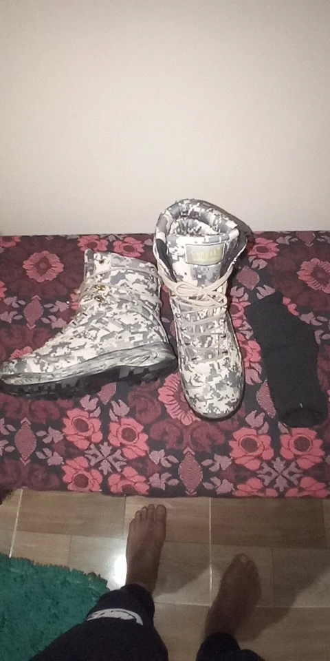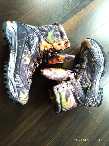 Очень красивые камуфляжные ботинки Я очень рад! Приятный цвет. Хорошо упакованы и пара носков бесплатно. На один размер больше подходит. Большое спасибо продавцу! Еще раз спасибо. (цвет зеленый. Фото не показывает реальный цвет.)