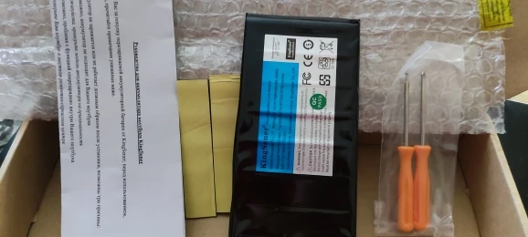 Шла посылка очень долго, почти 80 дней, упакован хорошо, в комплекте 2 отвёртки (крестовая и звезда), 2 клейкие ленты и инструкция на русском языке, батарея подоригинал, посмотрю как ее определит ноут и будет ли с ней работать. С продавцом общался по поводу долгой доставки, уверял что придет и надо ещё подождать, так и пришла)