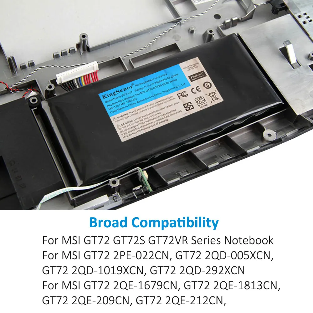 Аккумулятор KingSener BTY-L77 для ноутбука MSI GT72 2QD GT72S 6QF GT72VR WT72 MS-1781 MS-1782 2PE-022CN 2QD-1019XCN 2QD-292XCN