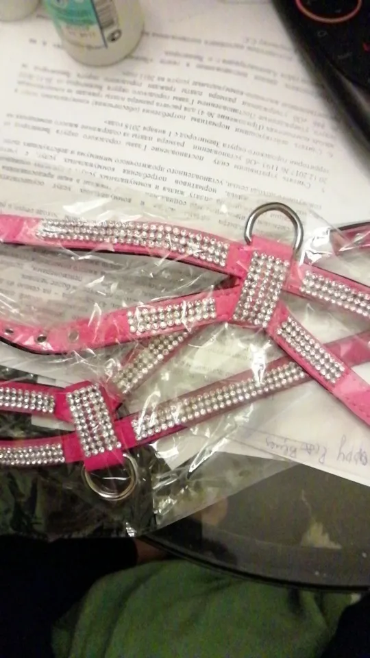 Очень гламурный пояс на животик и шею одновременно. Весь в бриллиантах. Не мерили пока моей чихе. Спит. Потом отпишусь. Думаю моей девочке понравится!!!