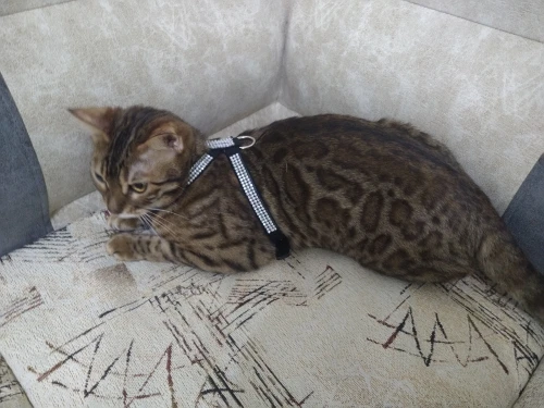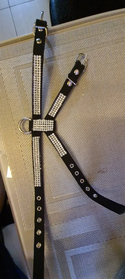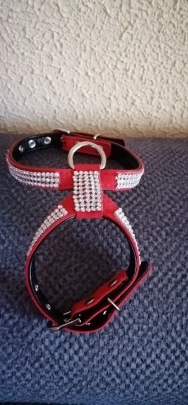 Наиогромнейшее спасибо продавцу за такой обалденно красивый и очень качественный товар. Обязательно еще закажу. На фото не видно как он переливается. Брала на той-терьера, весом 5 кг., грудь 43 см., как раз, не туго, на одежду не налезет. Конечно продавца и ошейник рекомендую.