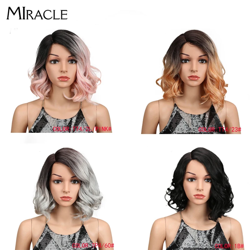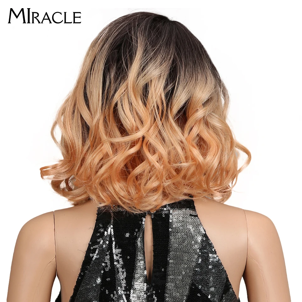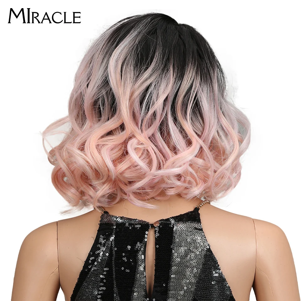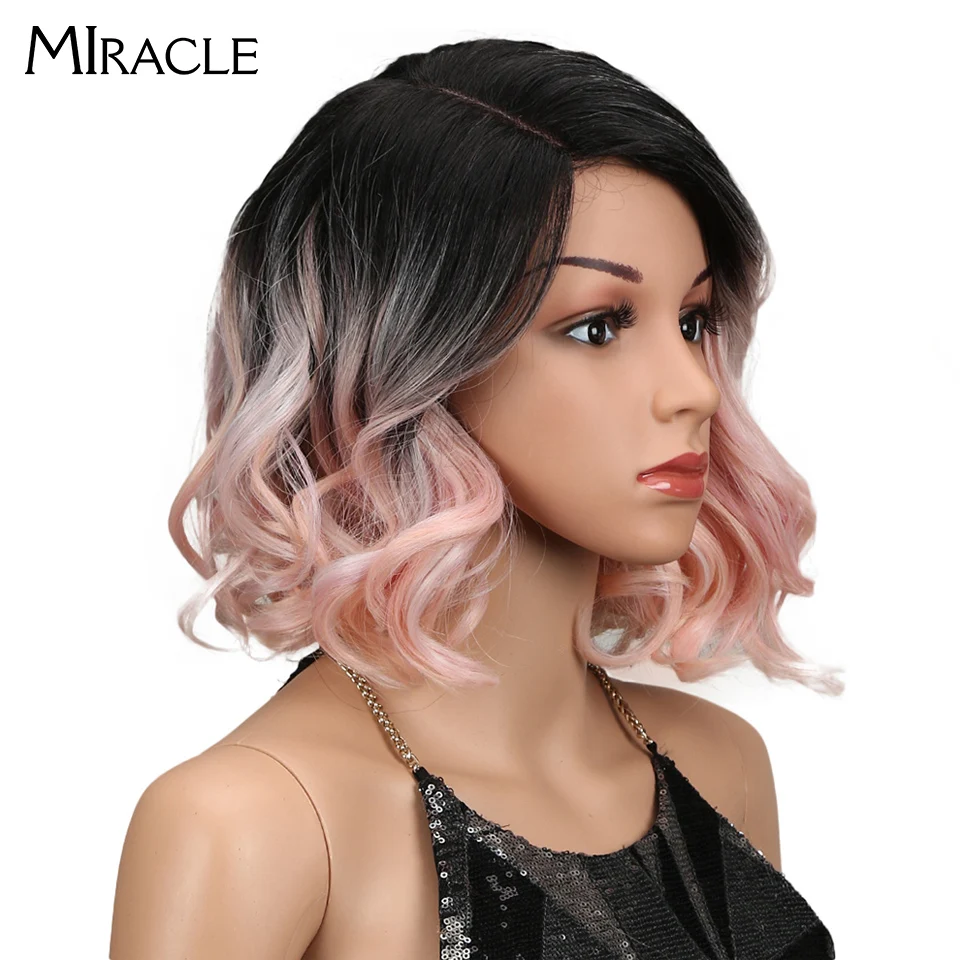 Чудо-волосы афроамериканские 12 дюймов черный Омбре розовый парик модный стиль свободные волнистые волосы синтетические кружевные парики для чернокожих женщин