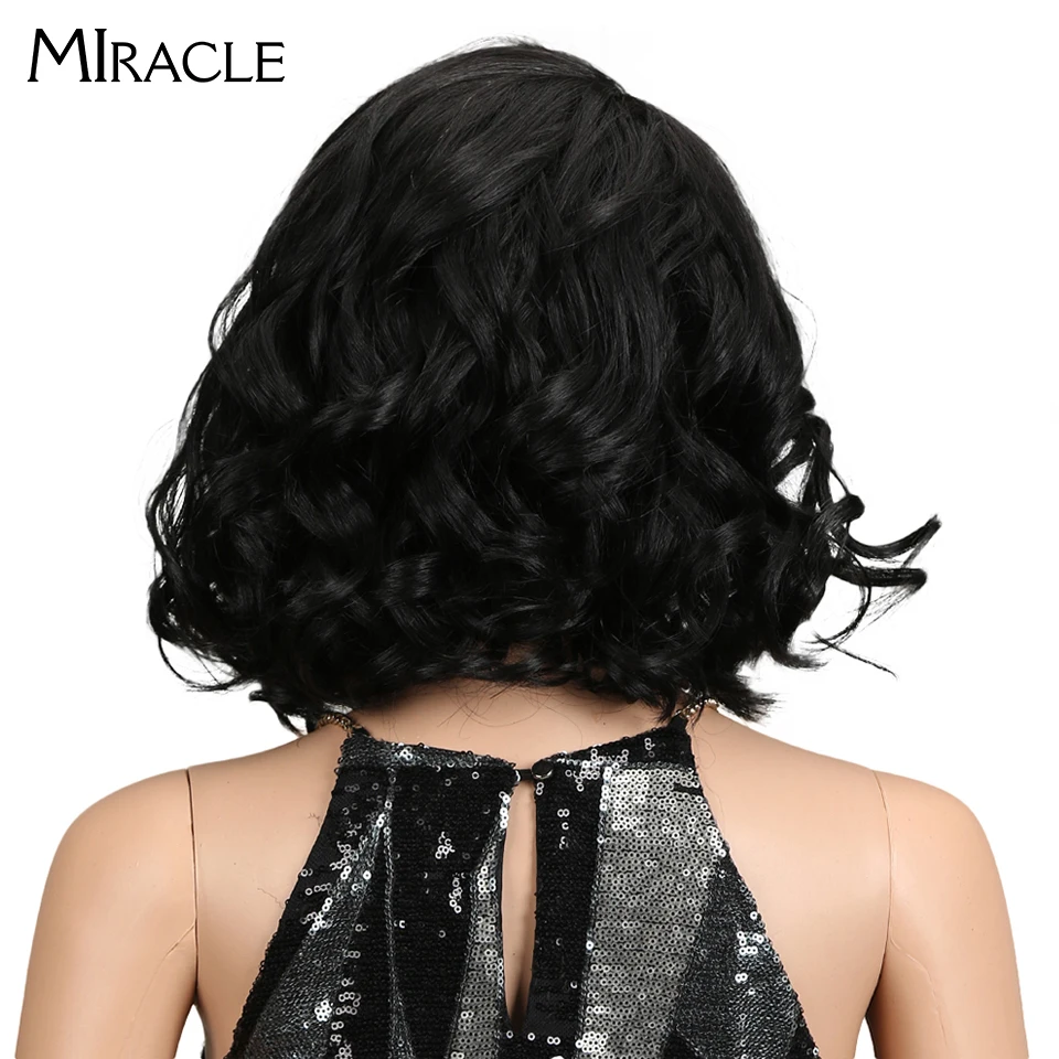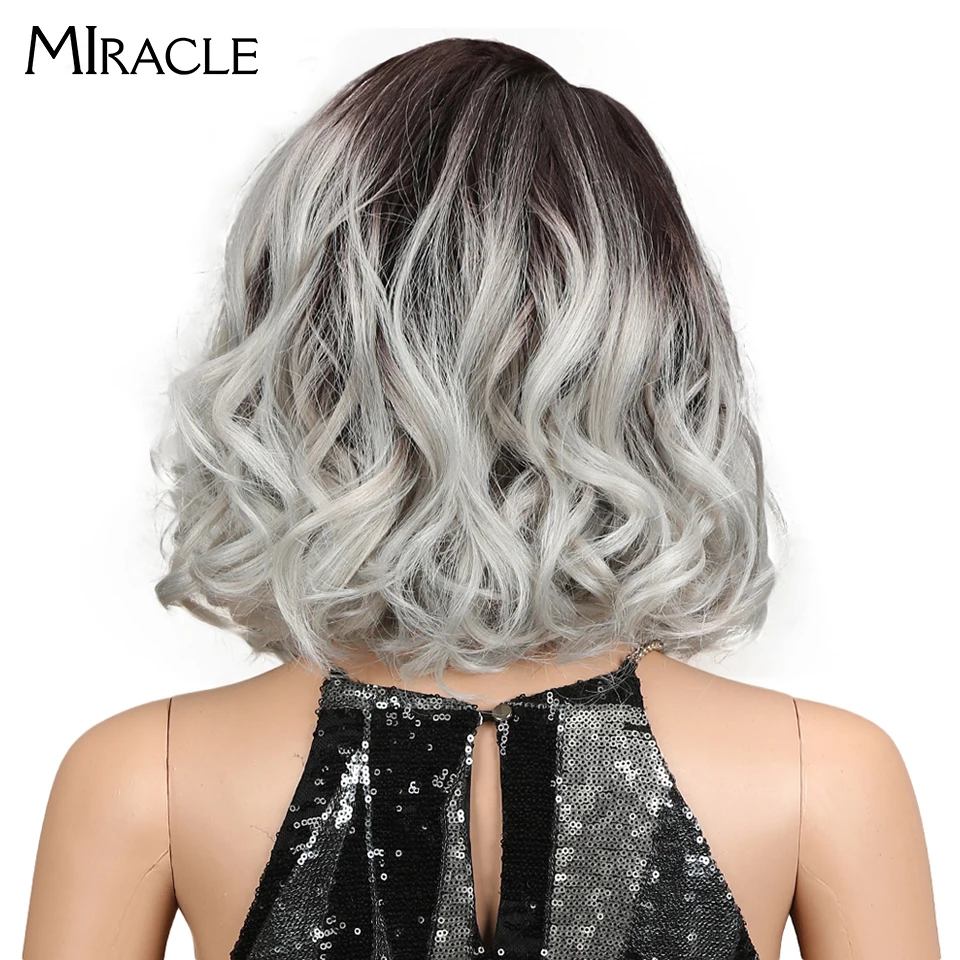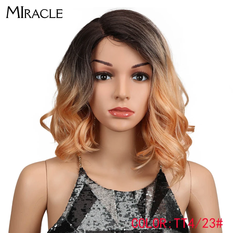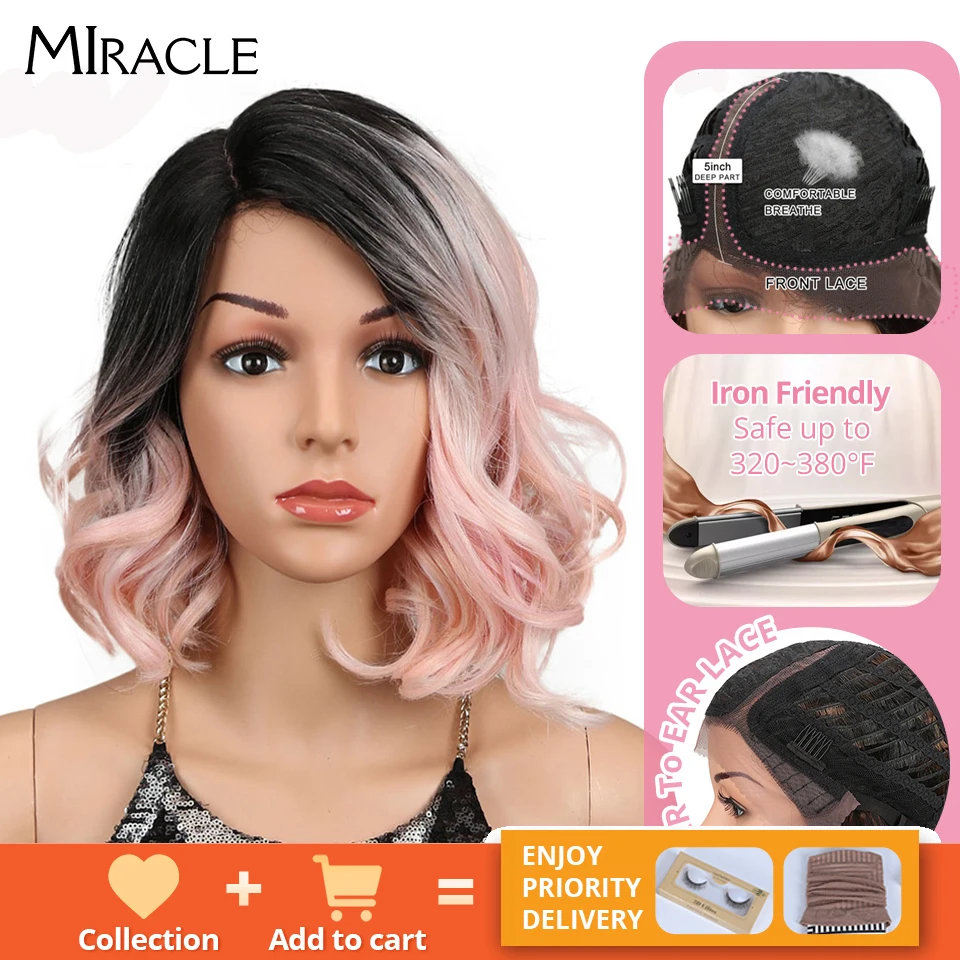 Чудо-волосы афроамериканские 12 дюймов черный Омбре розовый парик модный стиль свободные волнистые волосы синтетические кружевные парики для чернокожих женщин