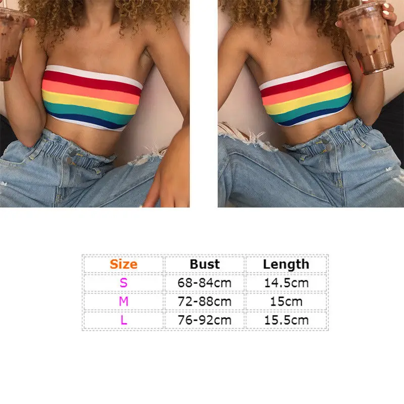 Женские летние бюстье, укороченные топы, жилет, майка-бандо, полосатые красочные женские сексуальные майки