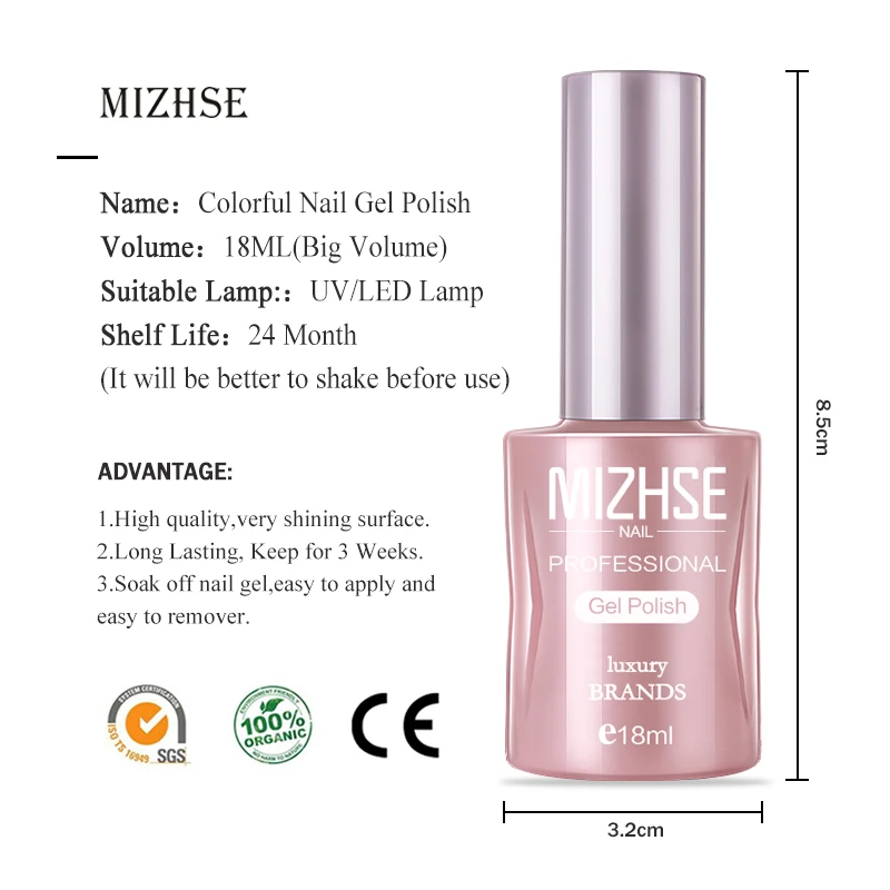 MIZHSE Гель-лак для ногтей 18 мл отмачиваемый УФ-светодиодный гель для ногтей чистый цвет краска гель эмаль для маникюра модный дизайн ногтей