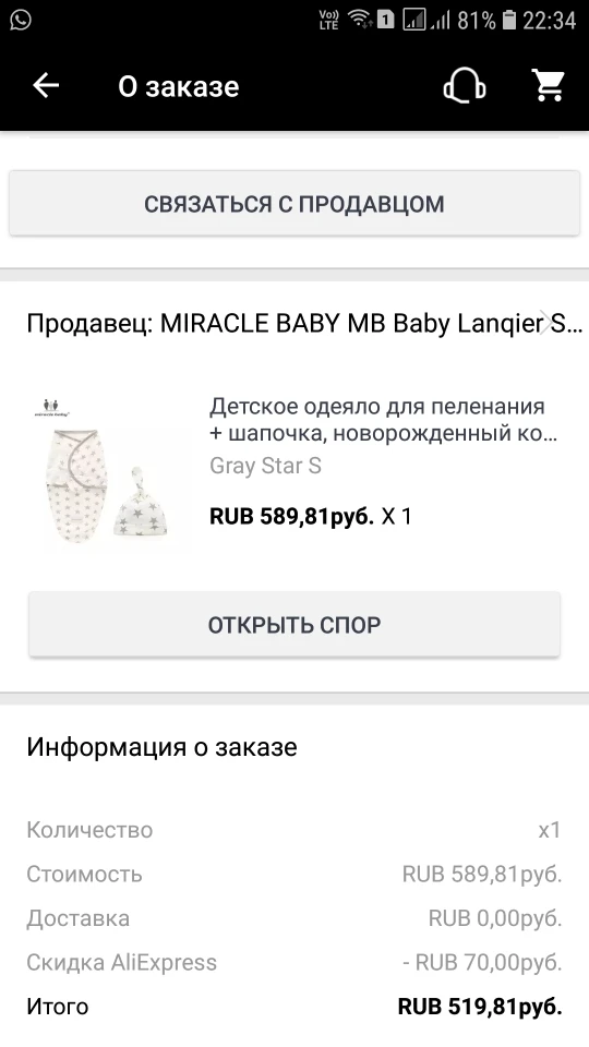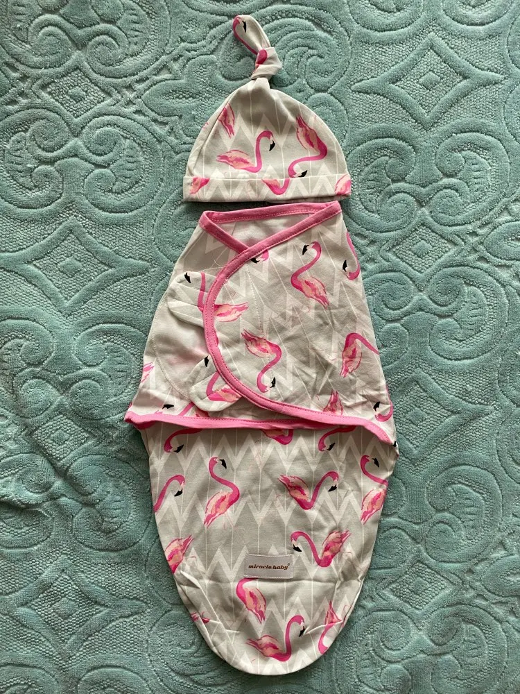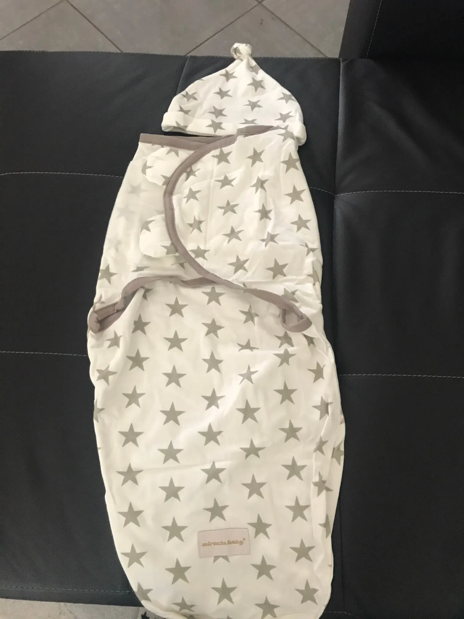 Пришло все вовремя. Спасибо большое. Очень понравилась эта завертушечка для малыша. Я бы только назвала её не одеялом, а плёнкой, это будет правильно т.к. эта штучка из трикотажной тоненькой ткани, нежная, приятная к коже и с надёжными не маленькими лепучками. Плюс славная шапчонка. Рекомендую.