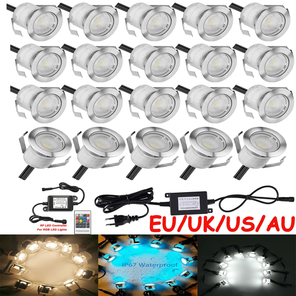 20 шт.компл. 30 мм 12 В IP67 наружный светодиодный светильник для террасы, лестницы, ступенчатые рельсовые огни, водонепроницаемый сад, тропа, патио, Ландшафтная лампа