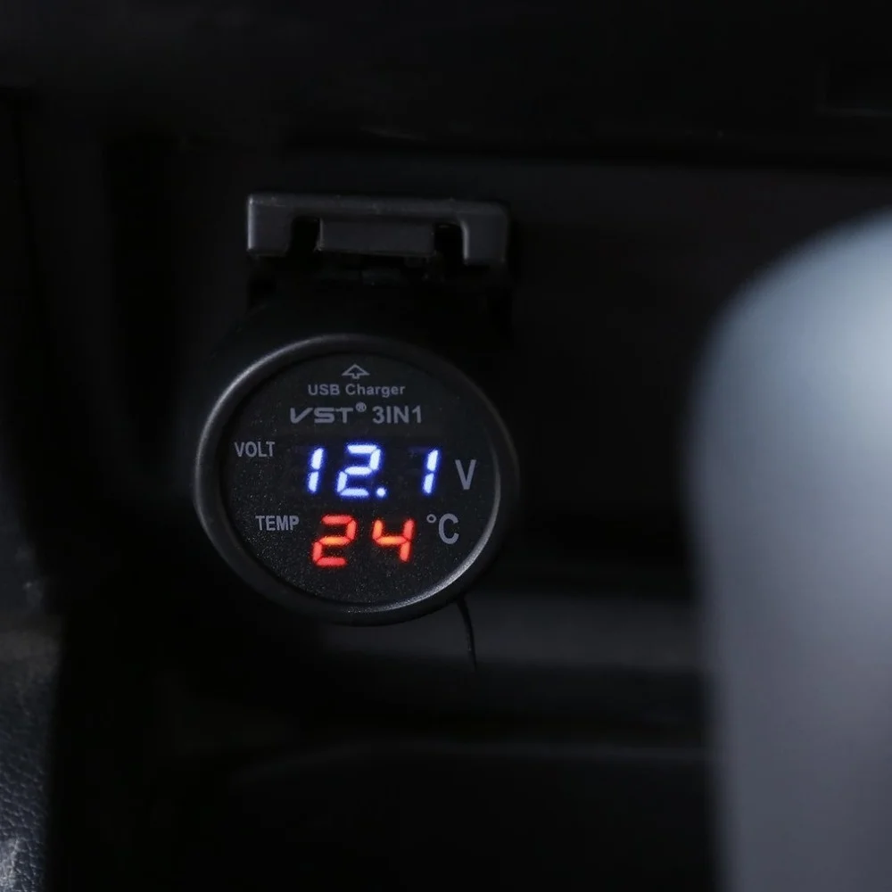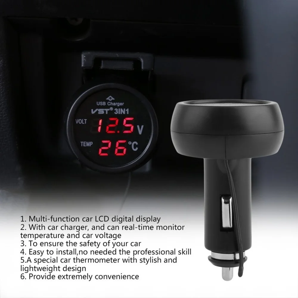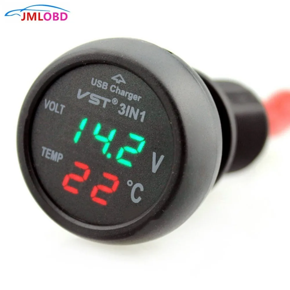 Многофункциональный Автомобильный цифровой вольтметр USB Автомобильное зарядное устройство 3 в 1 светодиодный прикуриватель батарея DC термометр датчик температуры Новинка