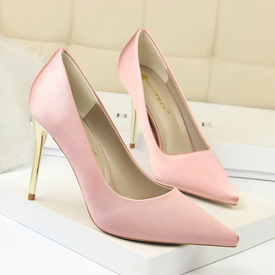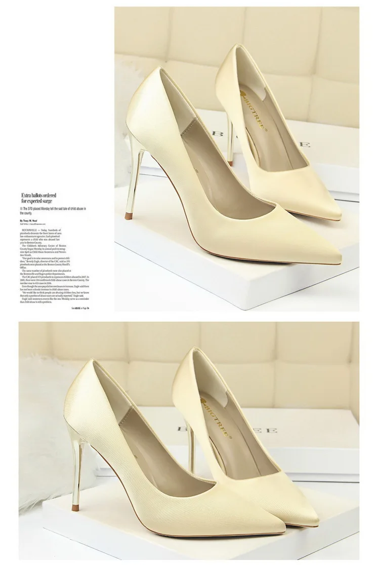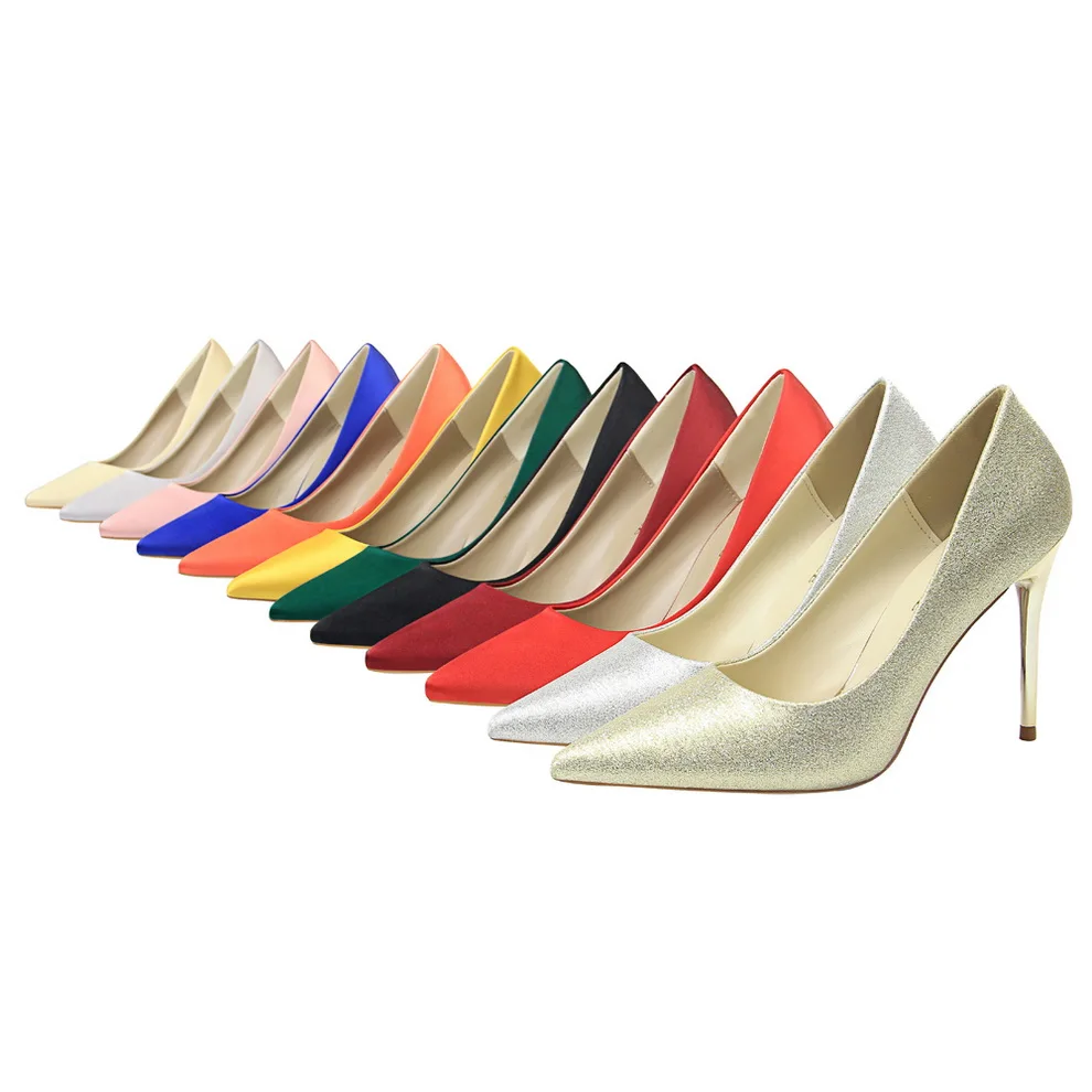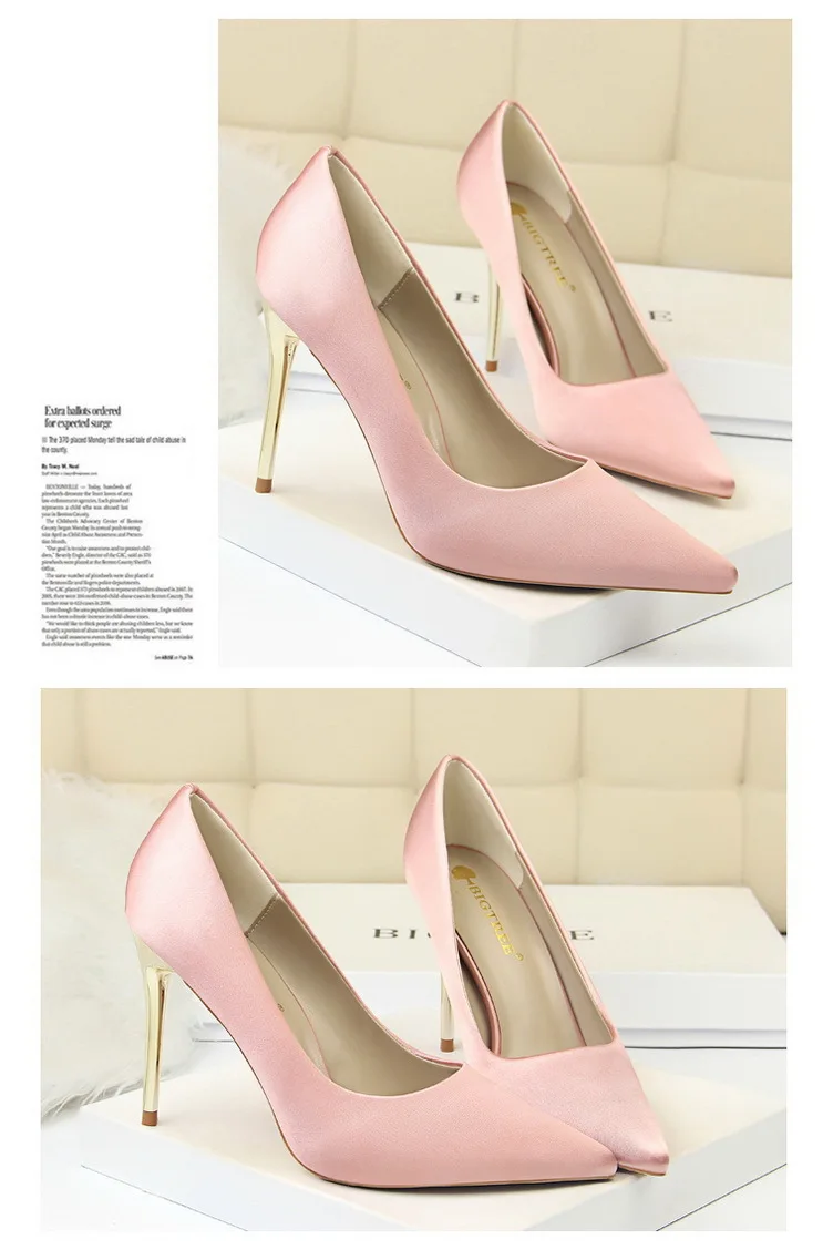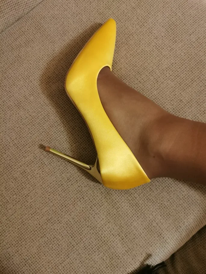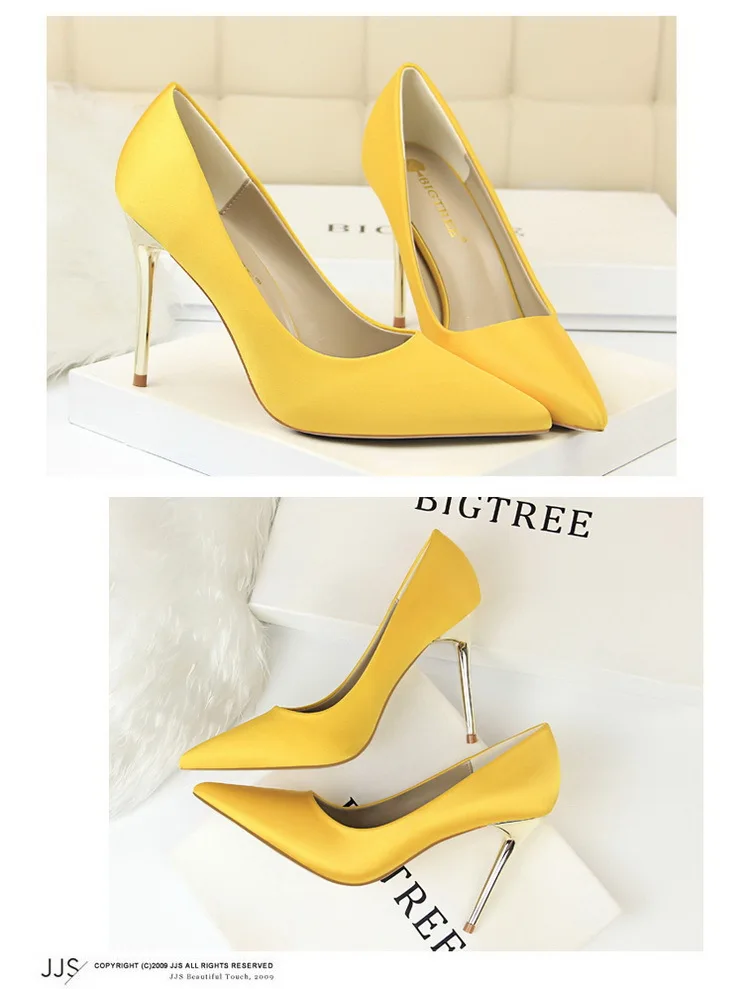 Туфли-лодочки женские на металлическом каблуке, атласные, желтые, 34, 42, 43, с заостренным носком, модные