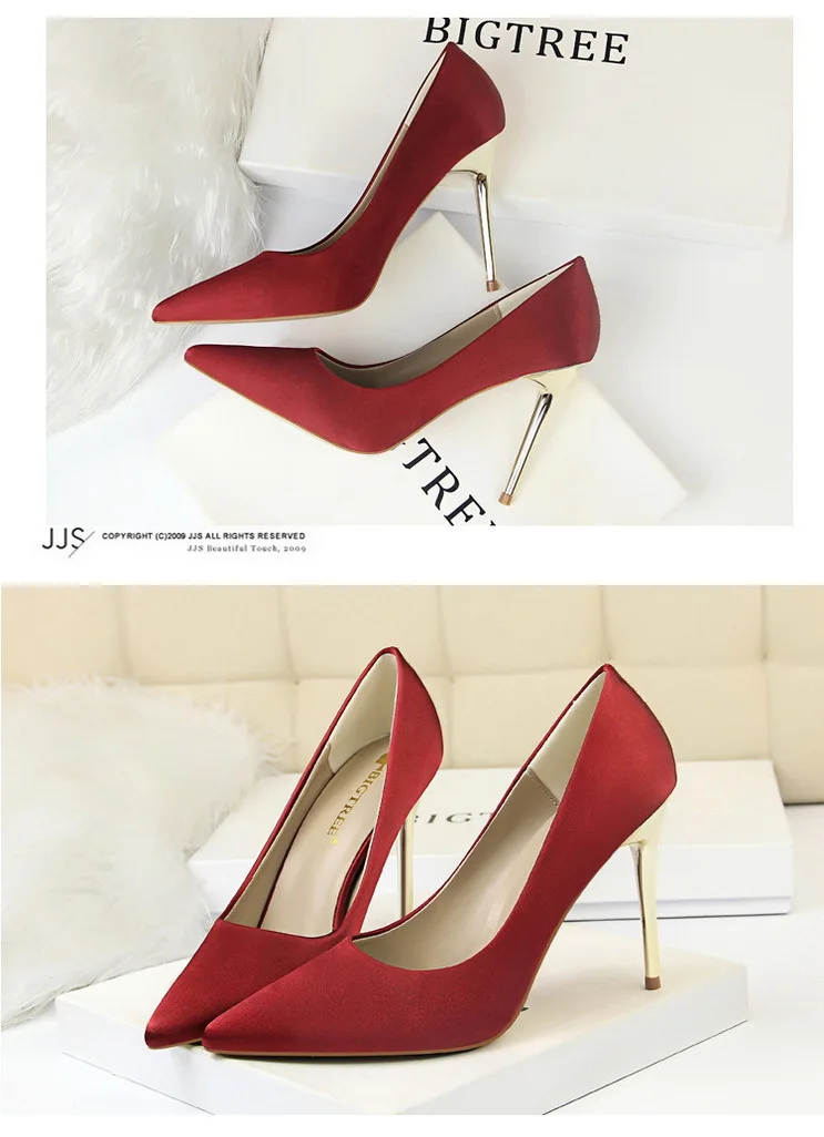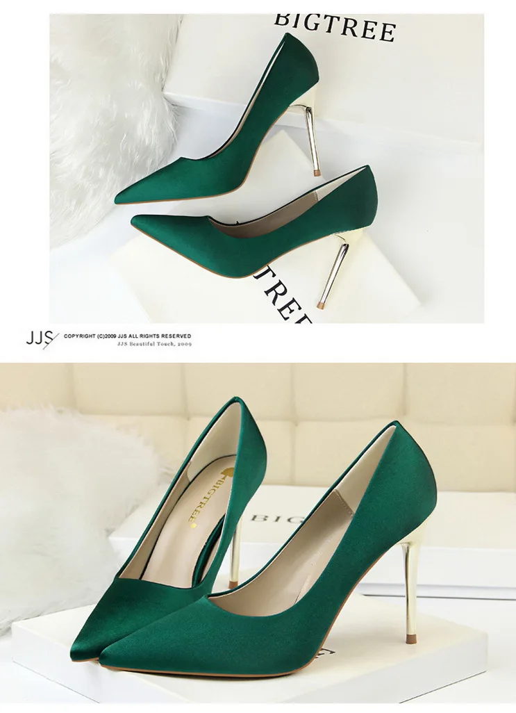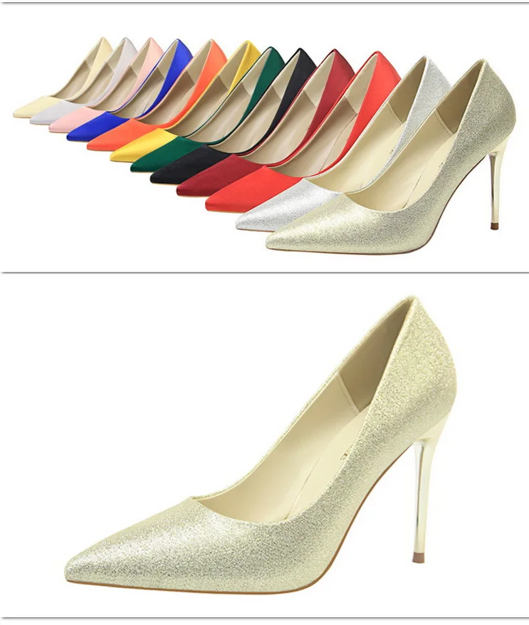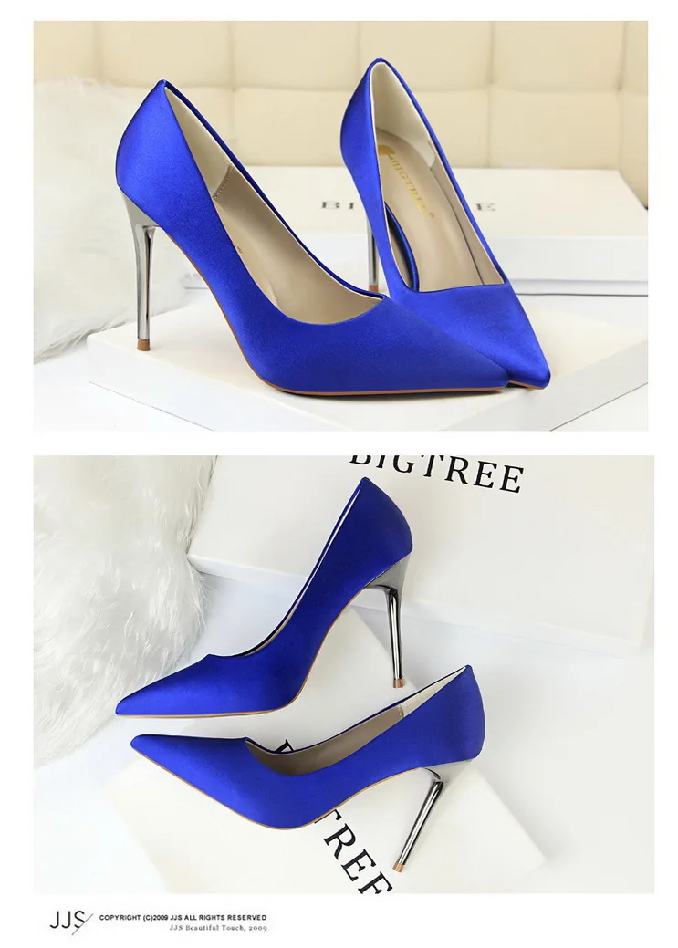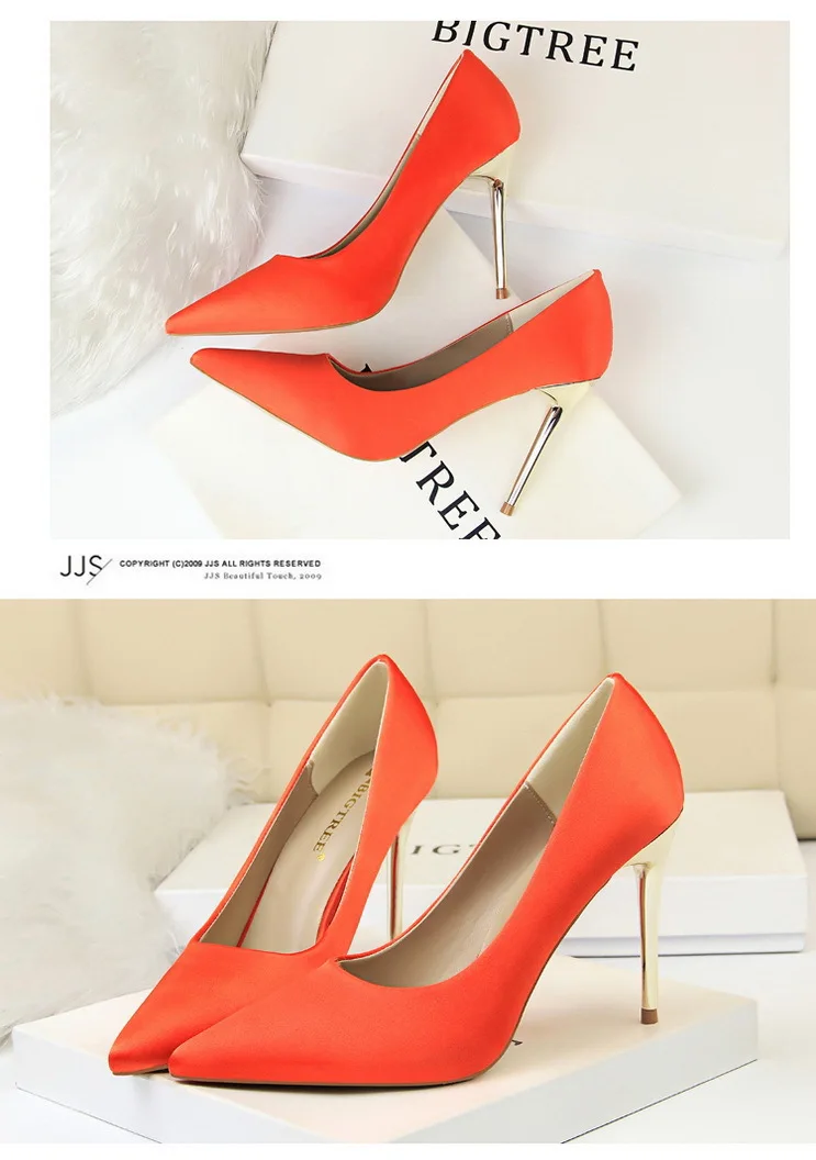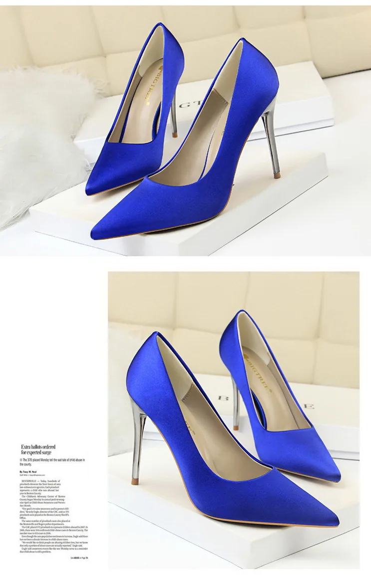 Туфли-лодочки женские на металлическом каблуке, атласные, желтые, 34, 42, 43, с заостренным носком, модные